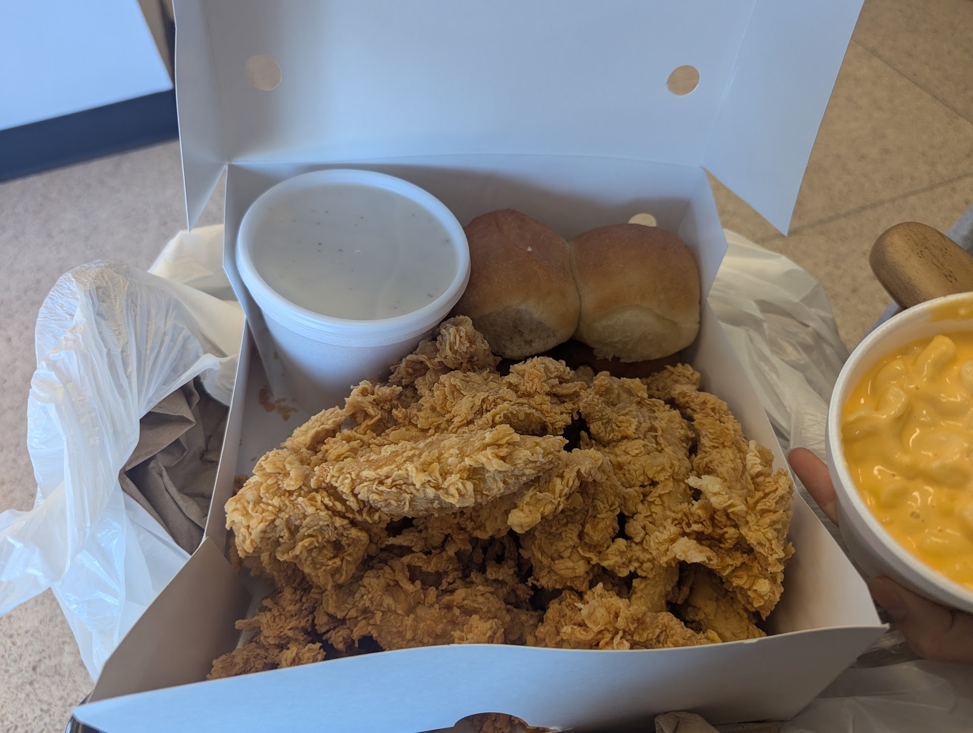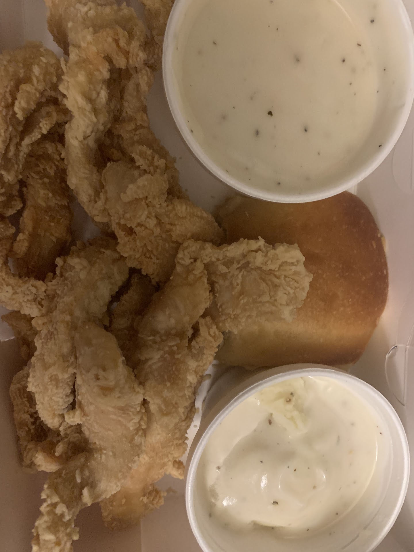 Read moreHorrible management. Waited about 5mins before I got acknowledged by someone. The manager rudely is walking around the kitchen and says, "what can I get you?" After I look at him strange since he's not at the register he repeats himself. So I give him the order, when he finally comes to the register he forgets half the order which was only combo and some sides. When I wait some time I finally get my order but supposedly their still waiting on my bombers. I see my chicken immediately and mention that it looks dry can they switch it out. Again the manager gives no eye contact and with some more rude attitude says, "their all like that." Gets a pair of tongs and throws 2 more ugly chicken strips on my plate. I wasn't asking for anything more, except for nice service and good food. Not some more extra dry food. Should've just got my money back and went to chick fila. Btw it was slow inside and out, so no excuses for the crappy attitude especially from a member of management. SAVE YOUR MONEY cause the food sucks. Chew on the chicken for about 5mins if you decide...