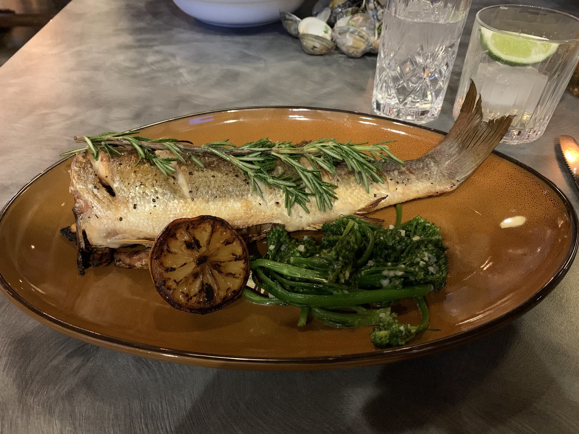 Ordering the Kentucky Fig cocktail to open the evening, I found the aroma extremely well-balanced and its flavor profiles expertly married. For an entrée, I ordered the Branzini al Forno, which offered the option of receiving the sea bass with head on, or head off. Stuffed with lemon and rosemary, it’s flavor was exquisite. The meat came away from the bones with ease, and the skin (as always) was the seat of the flavor of the dish. It was accompanied with the seasonal vegetable, which in this case was broccolini. Surprisingly, the flavor of the broccolini nearly surpassed that of the bass and completed the dish well.