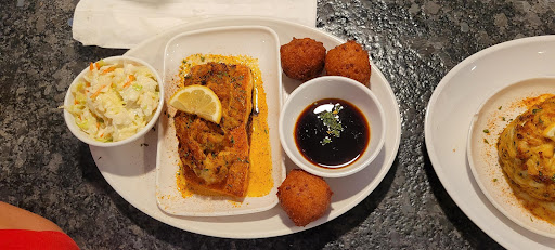We are not from the area but spent 4 days roaming around southern Maryland. Eating and seeing the gifts of the rivers. While at the wharf in Leonardtown, we decided to give it a shot. Small and welcoming. Food was crazy good. I had the rock fish broiled, and the wife the snow dinner. (Snow crab legs, hush puppies and two sides.) Coming from central NY the price was unbeatable for the crab, and the flavor canât be matched. The rockfish was unreal. I had it at a different place the day before and didnât enjoy the texture, but one look at this and you could tell it was done properly and fresh. Two fillets about 15 inches long. You can get it stuffed with crab meat, I decided against it that night. Two nights later we had to go back. Mainly for the crab cake, but also for the atmosphere that made us feel at home. Bellied up at the bar and ordered bacon wrapped scallops and crap soup to start. The scallops are cooked to perfection, and you are gonna wanna take a 5 gallon bucket of crab soup home with you. This time I got the salmon with a sweet glaze stuffed with crab meat. What a choice. Crazy flavor, and the sauce is on the side, so choose your own adventure. Iâve ordered skin on salmon at many restaurants before but never have I had the skin come as perfectly crispy throughout than this one. 20/10. The wife got the crab cake. We canât describe to you this crab cake (this was the 4th one weâve gotten on this trip) you just need to get it. We got it broiled and it was cooked to perfection and the flavor makes you sit back and contemplate past decisions. The hush puppies are great. Weâve been to the deepest of south, these are the best. Cake, if you can fit it, is good as well. The last thing is the orange crush cocktails made by Tessa. Order them. If youâre driving, donât. Order a few more and take an uber. Fresh squeezedâŚ.. my lord⌠we also had them at other places, T&Js was by far the best. If youâve made it this far thanks for reading. Go to T&Js and enjoy it. These places...