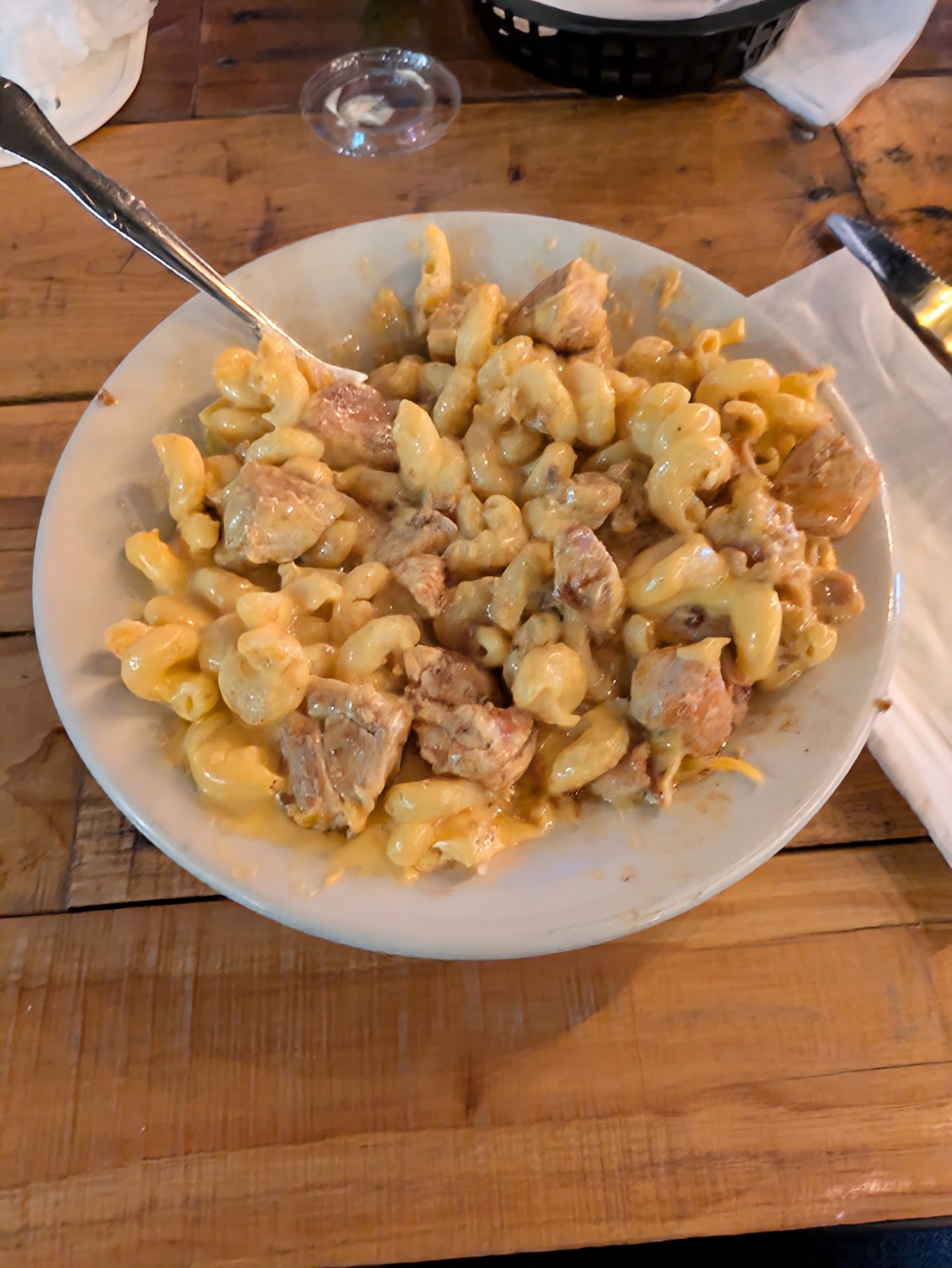 The food was excellent and the portion sizes were unbelievable!! In a world where you pay almost $20 for half a serving... Boss not only keeps their food at a reasonable price, but I received the largest portion of Buffalo Chicken Mac and Cheese than I EVER have ANYWHERE else. The chicken was more of a smokey flavor than buffalo, which I liked even more than buffalo anyway! Unfortunately the picture is a little blurry, and I already had about three bites prior to taking it. Safe to say, we did not leave hungry.