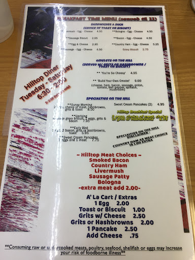 Read moreThe owners of Hilltop Diner are a great husband and wife duo. My daughter and I decided to go there on a spur of the moment. We were not disappointed. The family friendly atmosphere was so refreshing and the breakfast was absolutely worth the trip. I recommend anyone that wants a variety of breakfast edibles, welcoming atmosphere, and excellent cooks to hop on over to the...