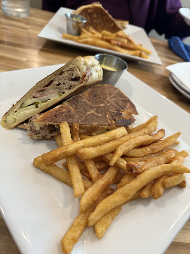 The menu is a treasure trove of great options. A few appetizers immediately captured my imagination—Cubana Egg Rolls, the Boca Seafood Skillet, and the Crispy Corn Ribs. Though I resisted temptation this time, I’ve been assured the Mussels in Paradise are nothing short of divine—a promise I’ll gladly return to verify. Signature dishes, marked with a charming palm tree icon, showcase the creativity of the kitchen, and I struggled to narrow down my choice among the sandwiches. Ultimately, the Floridian Cuban Sandwich won me over. After all, when in Palm Beach spirit, why not go all in?