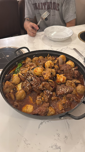 When the hot pot came out she kept playing in our food. The worst part was the noodles were overflowing the plate. They come out on these plates that are like 8-in plates. The noodles were touching the table and she was using her bare hands to pick them up and put them back on the plate. Then as we were eating and putting stuff in our boiling water she was coming back and picking up our food and throwing it in the hot pot she wouldn't stop playing with our food.