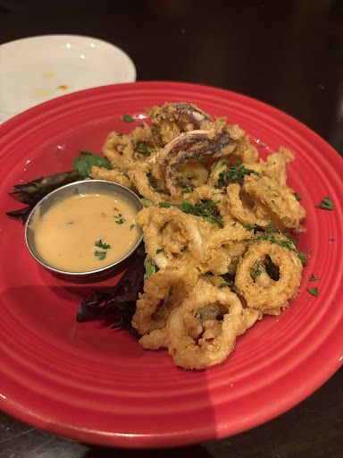 Read moreThe food served at the Livery Tavern is better than some foods Iâve eaten at Michelin rated restaurants. Iâm not exaggerating- this place is absolutely delightful. The atmosphere of the restaurant itself is rustic/ speakeasy kind of energy. Itâs a smaller spot, but it makes it feel homey. The owner was walking around checking on tables and I thought that was adorable! We started with the calamari which was some of the best Iâd ever have; the squid wasnât rubbery and it was perfectly crunchy. For the main entree I ordered the salmon (cold smoked with honey and brown sugar and then baked!) with risotto and my husband ordered the sea bass with Brussel sprouts. He was so impressed he actually ordered a SECOND entree; the special which was a red fish and equally as delicious. The star of the show for me was dessert. We ordered the banana crĂšme brĂ»lĂ©e cheesecake, which Iâm sure will end up on a regular rotation for my pregnancy cravings. It is absolutely worth driving 8 hours from NJ for!