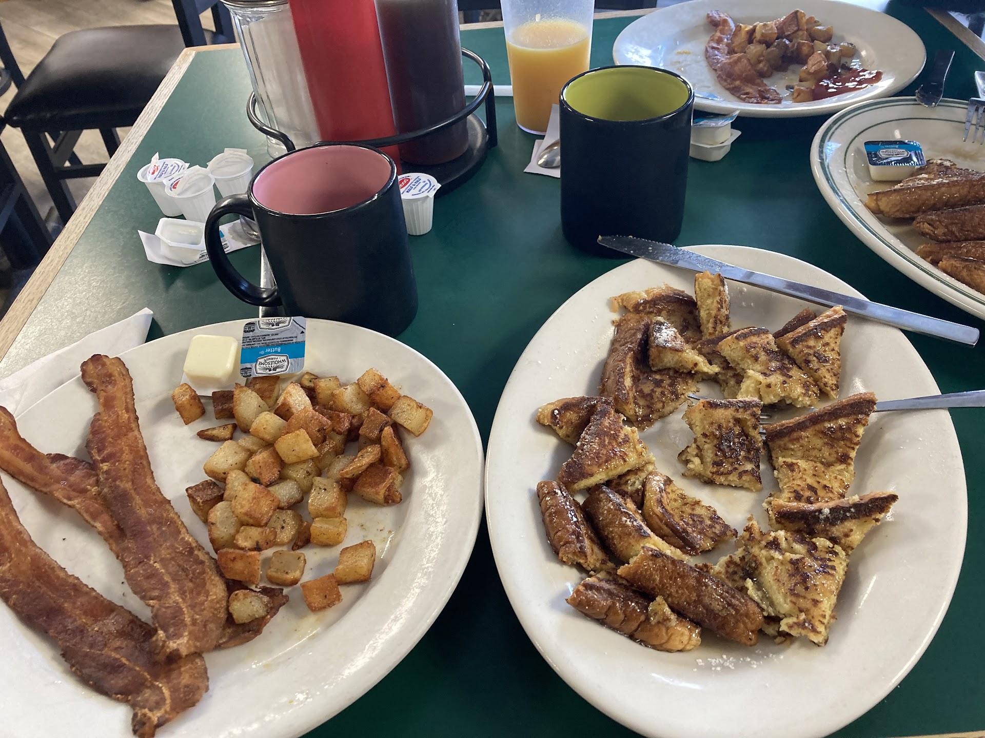 My husband and I ordered the same thing: french toast, homefries and bacon. Yummy