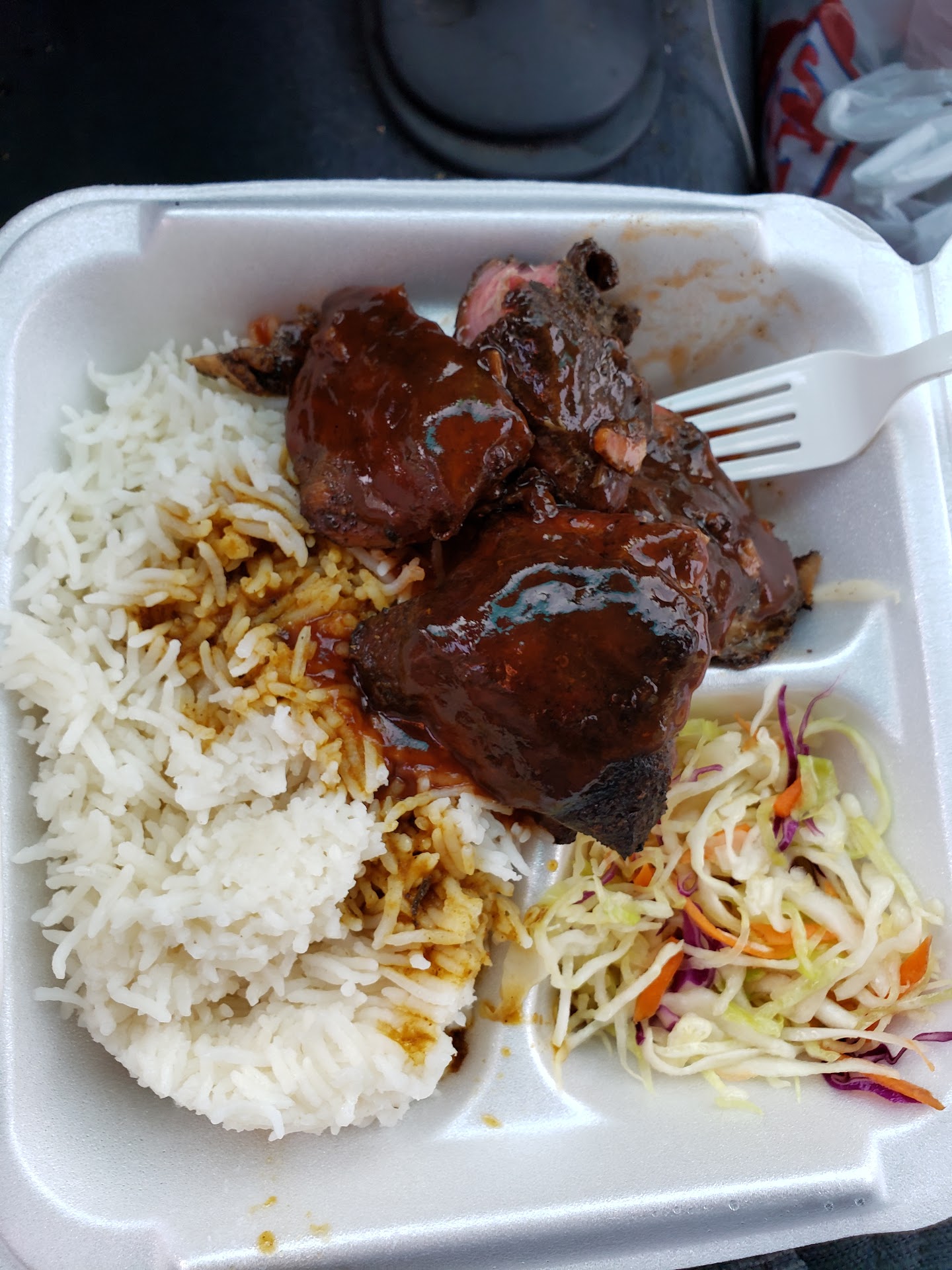 Drove by recently and saw it was open. Looked interesting enough to give a try, especially since meat and rice is my wheel house. Food was good, well cooked, I tried the pineapple jerk as a first timer and didnt want to get sweated out. I felt the heat was lacking at first, but by the end there was a definite spice, little less than medium salsa I would say. Having never been I got a large plate to see what it amounted to. The large plate was $14. Here is where we run into problems. The large plate consisted of 4 or 5 pieces of leg quarters, maybe 2 cups of rice and some coleslaw(always a throw away to me but fresh and crisp). If this was 8 bucks, I'd eat there twice a week. But at 14, there is just no value there for me. 2 bucks worth of chicken and 50 cents in rice does not a 15 dollar meal make. I'll still go back on occasion, but it doesnt have the value to work into my...
