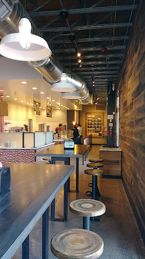 The atmosphere of the dining, decor and staff are very upbeat and friendly and seem to be efficient in keeping things moving along as well as the price was a plus. It was very busy and a long line but it went pretty quick. But the the pizza wasn't great as I hoped. The sauce was ok the toppings were very scarce I even had two slices with no pepperoni on them as a main ingredient of the pizza and very little cheese. I had a total of 5 small pepperoni slices for whole pizza with 3 other toppings that were scarce too. So ask for more at least normal for yours. The gluten free pizza was chewy in some slices as I had warned them it could be. I had asked for extra browning/ crisper on bottom to eliminate that as I am well seasoned with this process and GF crust and found what wks. The girls applying the toppings said oh its fine it won't be chewy one staff member had it and she said it wasnt. But it was - two slices were chewy however, at least not the whole pizza was a total loss but still disappointing. The other issues are they seemed to cook the GF pizza with the other wheat/gluten pizzas and could have had cross contamination issue though I didn't have a reaction it's not what gluten free with celiac, gluten intolerance can handle. I should have been more careful even for me. Forgot about oven. It's rare to be able to eat out these days and I am thrilled when I can find a place that offer GF and will order alot when I do but it's a risk on having it cooked here for sure unless they are made aware and some changes they need to do. They don't have the flour pizzas made with stuff floating in air while making GF so that's a plus. The dough was ready to go premade maybe for the day. They dont seem to be educated on the importance of the seperation to cook GF in oven tho. Work in progress I suppose. I will mention it to the manager and give them another try if they can do the changes above. And review...