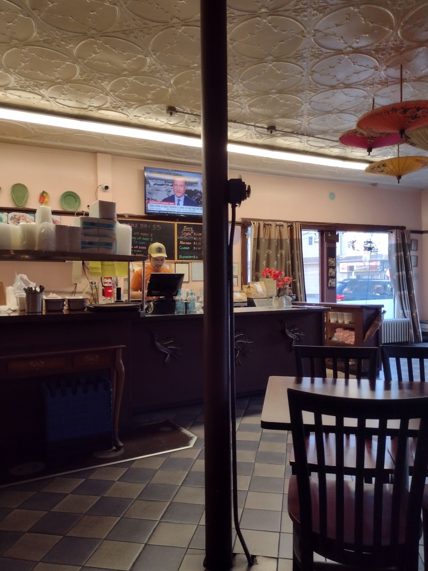 We took a chance, and stopped for a quick Sunday meal. As you walk into a “pizza slice”shaped building on the corner of College ( Bates College down the street) & Sabattus, folks order their food at the front counter. The menu offers a few appetizers like spring rolls, chicken on skewers, dumplings, etc. There’s a couple of soup choices. Then rice & noodle selections, followed by a good selection of entrees.