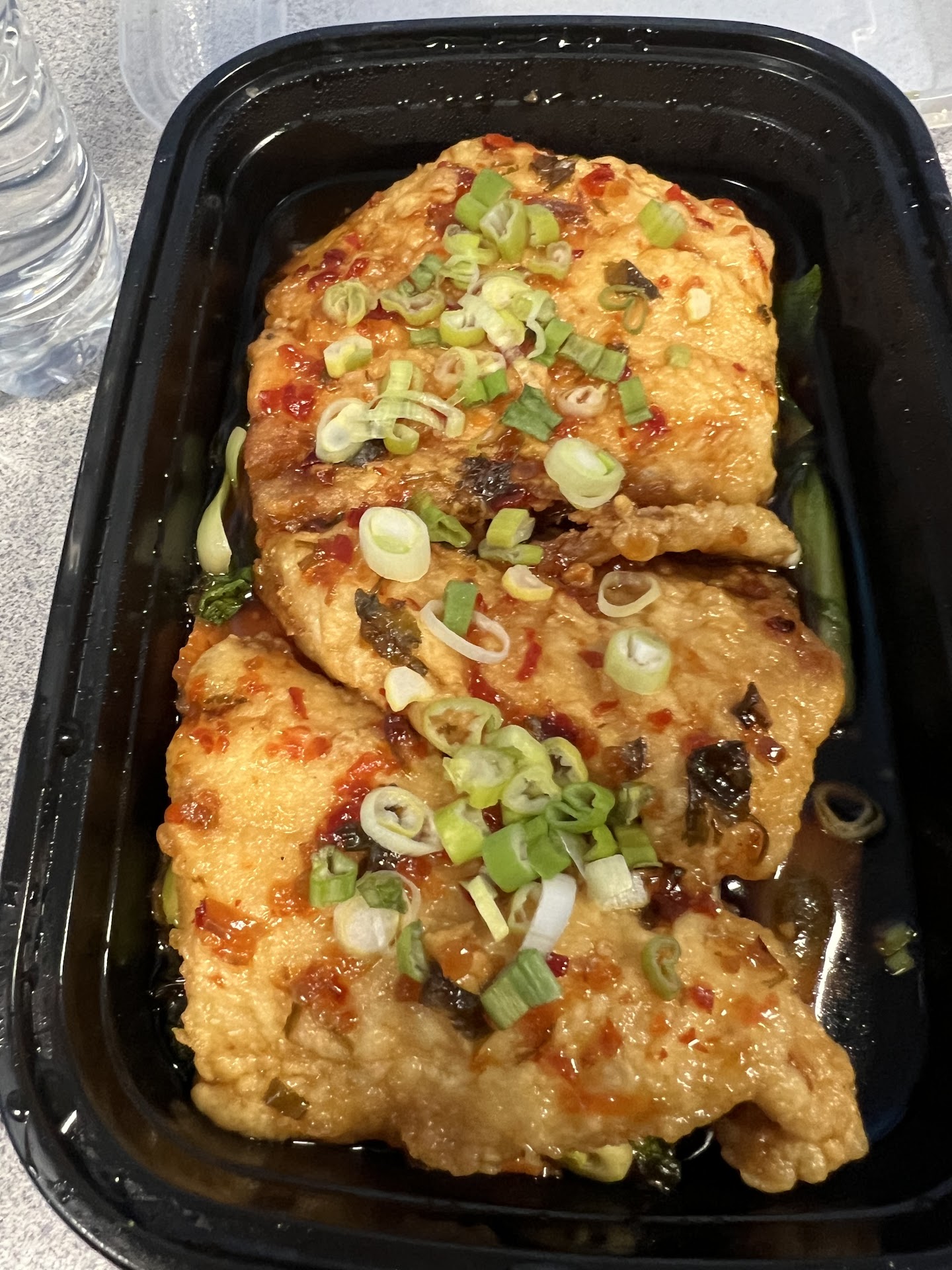 We met the owner & chef Pat V. She worked 12 years in New York , honing her skills. My wife ordered crispy duck, which was excellent! I ordered the spring rolls, which were vegetarian. . . I was hoping for spring rolls . . . veggies with shrimp, chicken, or pork style ? I also ordered the chicken skewers with brown rice. Very good. Plus the little $5 bottles of wine. . . with a plastic cup. Hey it’s fine!