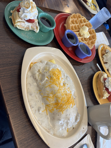 Read moreThis place has the best waffles and breakfast. The first time I went there I couldnt have asked for better. However this last time I went i was a bit disappointed. They told us about a 25 minute wait.. was more like a 60 minute wait to just get sat. Then sat another 15 before a server even came to greet us. I had asked the hostess for two more adult menus as the kids were not feeling the kids menus and never got them. I also observed the high school friends come in and get preferential treatment over other paying guests. I could be mistaken if this place takes reservations... but in the time I was sitting there I seen the hostess girls see their friends and seat them right away over people who were just behind us in the 45 minute wait. I also observed a conversation about the friend discount... which whatever.. don't concern me... but found that the conversation of 10 plus minutes between them when there were people lined up behind them waiting to get on the wait list or be sat was a bit unprofessional. The food was amazing and worth the wait tho. Just be prepared to wait if you go there on a...
