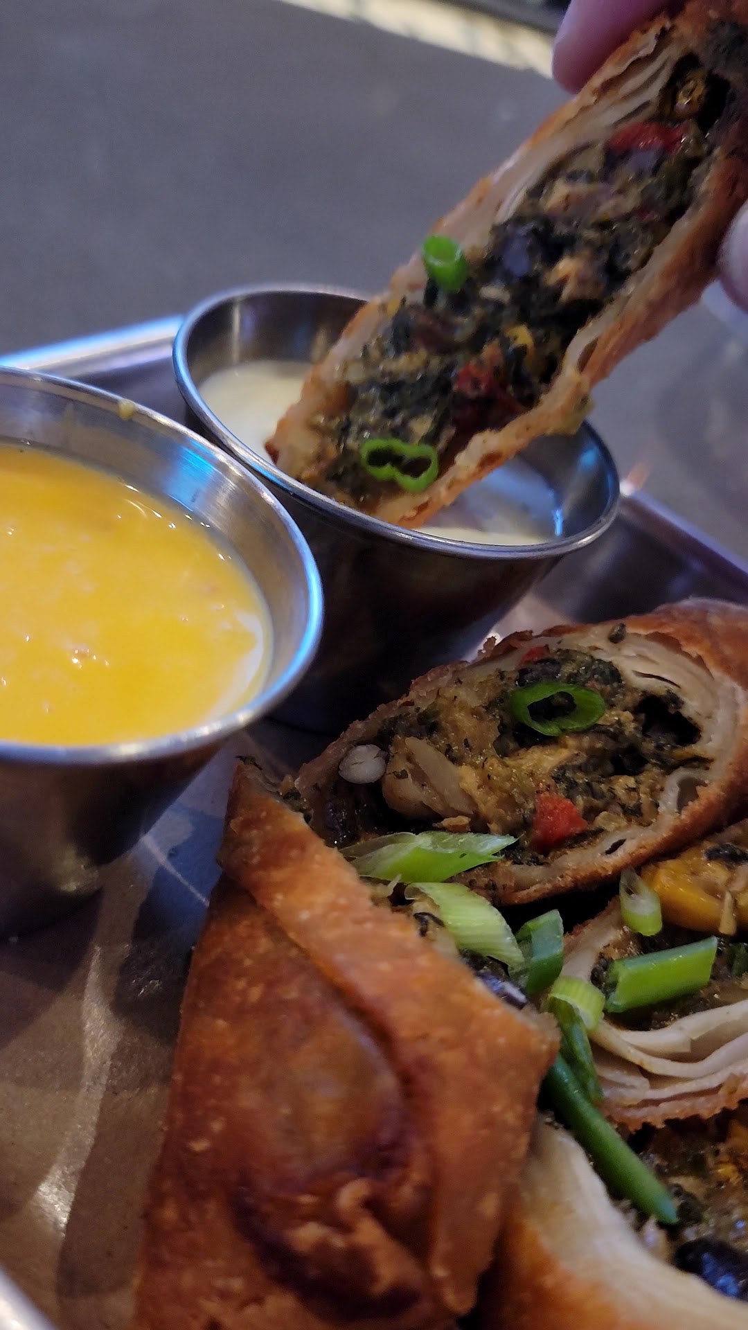 I really liked the atmosphere, the new modern looking decor. It had a lot of well placed screens throughout but the volume inside the place well contributed by the volume of the one channel that they had the audio sourced from was prohibitively loud. We actually wanted to sit in there for an hour or more because we were trying to kill a bit of time between engagements, and we were enjoying the $3 domestic beer, but it was so loud we decided to just kill that extra hour in the car. I would suggest using a decibel level meter and try and keep the median loudness at a safe and livable level. Hey, we know it's a sports oriented restaurant and that it has large capacity seating but the median loudness can still be mitigated with a bit of effort by management!