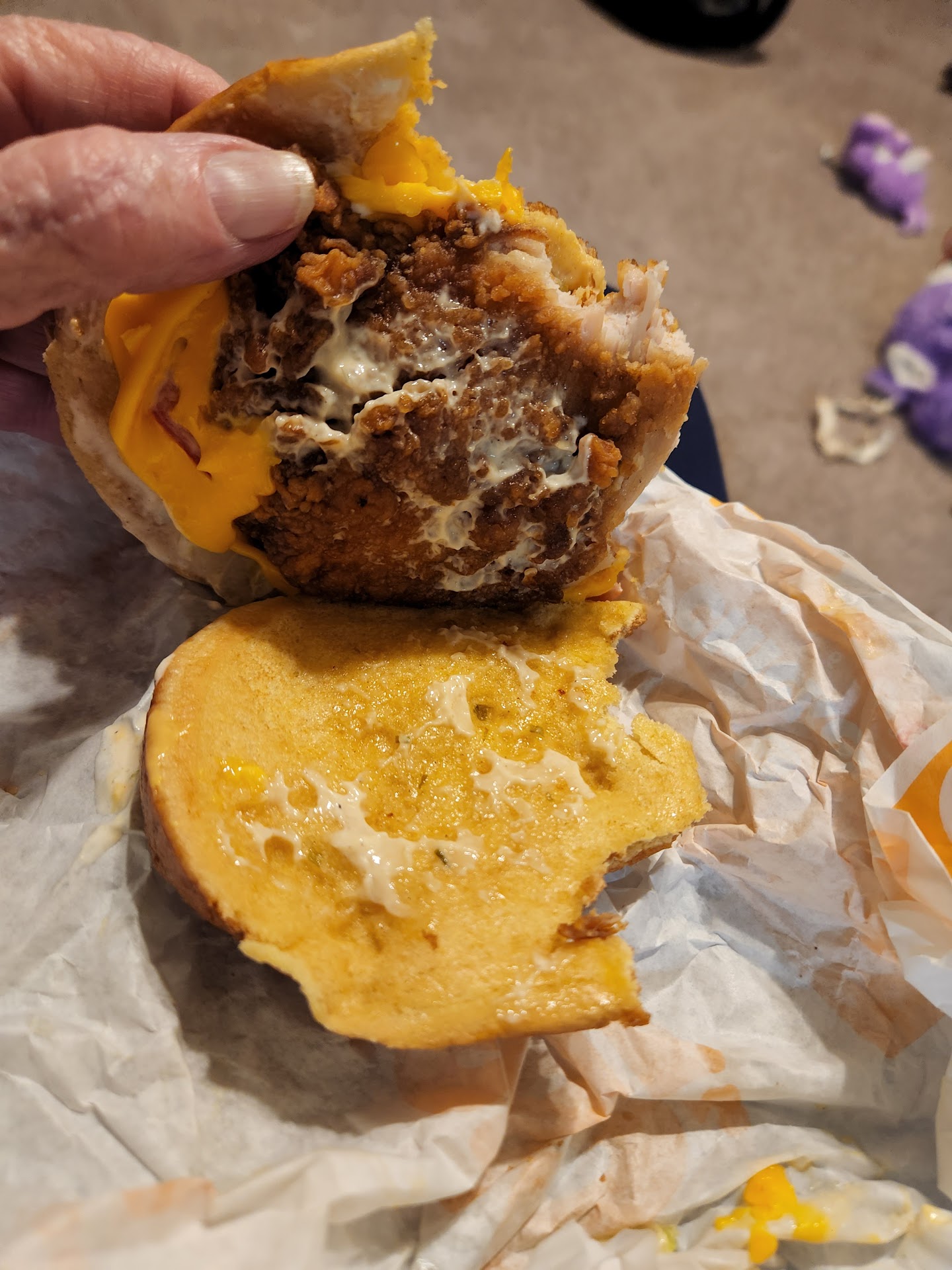 Rushed, abrupt, rude and incorrect order info. by window person (manager I believe) and no cars behind either so no need for rude rushed order. Asked for 2 for $5 items, added incorrect items that cost more. Paid, told to park in front (this location NEVER has given food at window, even for 3 french toast sticks). Delivered food, asked about wrong item in order, he shrugged and said 'yeah, ok', and walked off. Checked food, it was cold and dry meaning no sauces on double cheeseburger (2 for $5 request was for the extra long cheeseburger). No fish as per window employee, so asked for chicken sandwich. This has been constant there, but never to the level of rudeness for tatted older boy at window. This was my last stop. Previous window people were Latin American and very hard to understand (I speak Spanish and if I can't understand them, a typical customer will certainly not). Bad management and staff decisions in my opinion. Will NEVER stop...