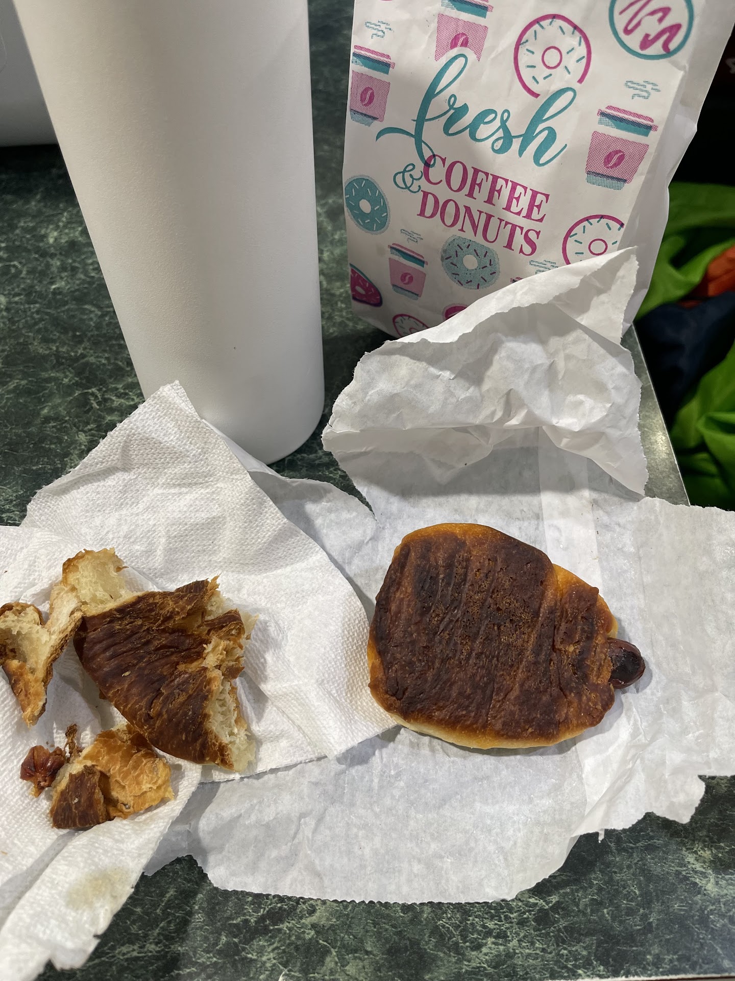 The bottom of my kolaches were burned. We ran a doughnut shop in the 90s, and while we didn't do this ourselves, we know how these places operate as a result and this is usually an indication that they're reheating old food instead of throwing it out like they're supposed to. I would be wary of their doughnuts, too. I wasted time out of my day to go back and show them; I figured I would at least get a replacement, but they said "there was nothing they could do" and didn't even apologize. I told them that I would be leaving a bad review and calling my credit card company to get my money back, and the lady didn't seem to particularly care. Also, be sure to get a printed receipt and check it. They quietly charge you extra for not paying in cash and are not transparent about it. Dishonest, bad business. People work hard for their money and deserve...