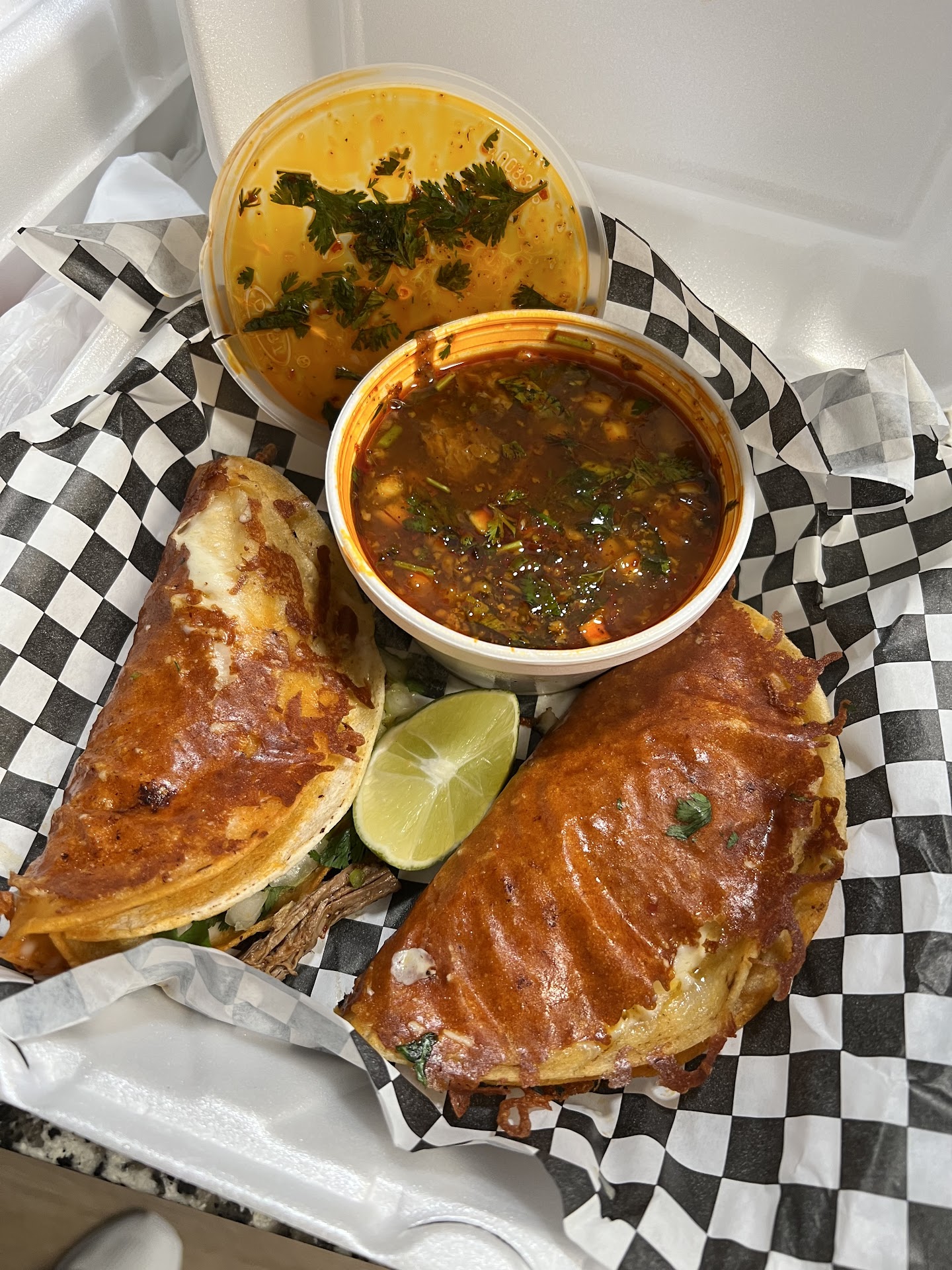 Ā Ā Ā Read moreSo I was influenced by the daughter on tiktok, so I called a hour before close because I wanted to make sure the kitchen would be open still (and it wasss). So I ordered 2 birria taco plates with a large order of rice and churo beans š«($31.37). My boyfriend had a hard time with drive thru/parking(understandable with popularity traffic from tiktok and not enough front facing staff) and he couldnāt really wait in the inside because their air conditioner broke the day before. So be prepared for a 30-35 minute wait after ordering, and give them some grace to adjust to the influx of new customers. BUT LEMME TELL YOU SUMTIN,I live 27 minutes away and my food was still hot enough to not have to heat it up in the microwave (I prefer my food pippin hot,fresh off the grill). And when I unwrapped the plastic and plated up the beans and rice,and I dipped them mugs in the juice and took the first bite ššš and then I dipped it in the green sauce I was mad because it was so good Iām considering going back soon even if the wait was 30 minutes š§š½āāļø of course Iāll have to go on a weekday and not a Friday an hour till close. I was extra hungry,but it was worth the wait. Itās flavorful and fulfilling so donāt over order. Two birria tacos with beans and rice is definitely enough to get you full. Once they get the wait times together for larger amounts of people coming through this place will be a...