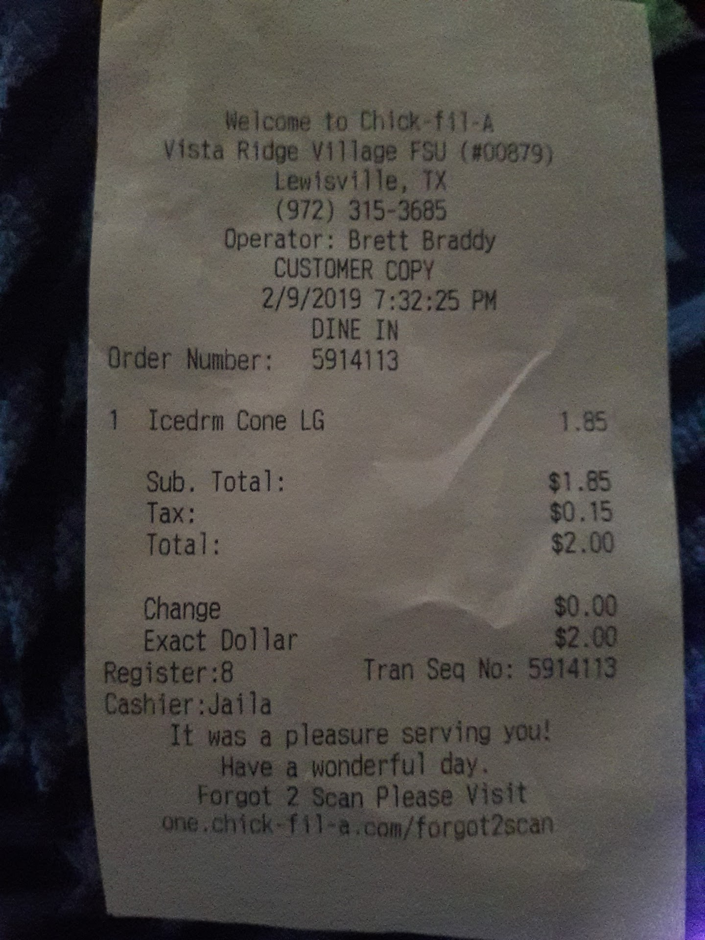 I am very very very disappointed in the level of customer service I received at Chic fil-A today. I was in a rush and there was a long line but from experience I knew the line would move briskly so I waited diligently. When I finally made it to the menu board I ordered the #4 3ct which came to $7.57. I order this meal regularly so I was eager to indulge.
