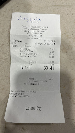 Read moreI was very, very very disappointed with this Denny’s. I went there strictly for the free veterans meal. Even though I had multiple other choices I could have picked, but I chose Denny’s. First off the server Maria seated me. I advised her that I wanted the free veterans meal. She said OK asked me how I wanted my eggs. I told her with cheese and onions. She also asked me what I wanted to drink. I told her coffee and orange juice. She said OK. Not one time did she tell me, that any of what I ordered was not included with the free meal. a little while after that, I heard her at a different table with a Caucasian gentleman and told him thank you for your service. Not one Interaction throughout the whole time I was there, did she tell me thank you for your service. Following that a few minutes later, she was back at the Caucasian gentleman’s table and she said to him no there is no charge. He gets up and walks out. I can’t say if he had any coffee or orange juice, but he didn’t have to pay and just walked out. A few minutes after that when I was finished, I got up, went and walked out the door, and she came out the door behind me and said Sir you didn’t pay. I asked her pay for what I thought it was a free meal. She says to me , no the add-ons and the drinks are not included. we went back in the restaurant. I asked her why didn’t she say everything wasn’t included when she took my order. She went and got the manager. Home came out and said that the orange juice and coffee were not included. Neither were the cheese and onions on my eggs. I advised her that I was not informed that when I placed my order. She told me that that’s the way it’s always been. I told her that I never been there on Veterans Day and did not know that. She in so many words told me I was SOL and instead of a free VETERANS MEAL I end up having to pay $11. I have reported this to Denny’s corporate office. I will see if they make this right and get...
