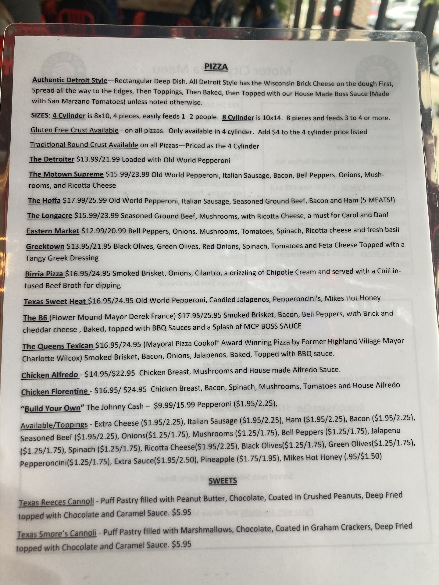 Grab a friend who likes to swap and share and head to Motor City Pizza !!!STAT!!! You’ll feel pretty VIP with the reserved parking spots. Although, worry not there’s plenty of general parking for everyone in the strip center parking lot.