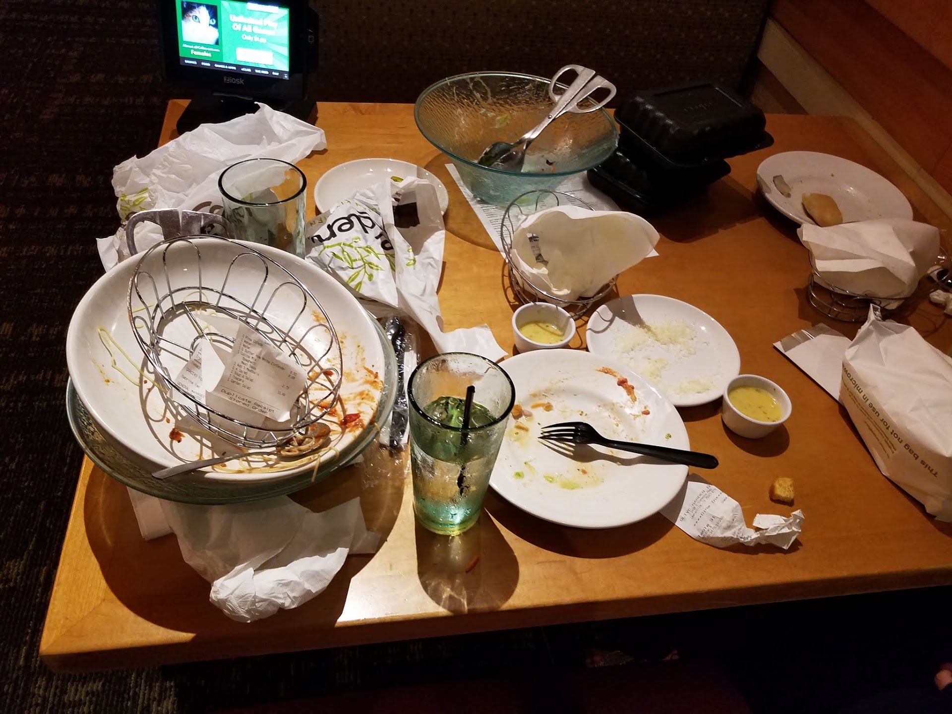 I struggled for a bit about whether to give 1 or 2 stars simply because almost all of my experiences here have been pretty good, but ultimately when I came back, I was still disgusted and decided that I couldnât overlook what happened and elected to go with 1 star. To keep a very long story relatively short, my wife and I decided to visit the Olive Garden as we have done many times before. This time however, after asking for a soup to-go (which is always packed in a to-go bowl for the customer) the waiter decided to argue with me relentlessly about him charging me for it, then when I asked him to get the manager he wanted to continue giving me his opinion on the matter. He then dropped off all the other dishes/plates he was taking to the kitchen on my table, crumbled up the receipt, and threw it on the table in front of me. I promise, I could not believe what this guy was doing. It was so far away from any experience I have ever had that it didnât seem real. After I got fed up with him and told him to just go get the manger he still wouldnât listen until I pulled out my phone to record him and OF COURSE that got him moving at which point he decided to give me the finger and tell me âf* youâ IN FRONT OF MY WIFE! The absolute worst thing that has ever happened to me at a restaurant in my life and all for a $6 charge! This so-called waiter (Jedidiah R) has absolutely no mannerisms, respect, patience, or any quality even resembling that of an employee of the service industry. The manager came over and handled the situation exactly like he should have from the start. She ended up covering the small order in its total and we were on our way afterwards. Overall, Iâm just disgusted and amazed at how incompetent someone can be. This person clearly has no respect for himself or others and, personally speaking, am shocked that he even has a job. I really am. Iâve worked with some very grimy people in the past but none of them would ever do what he did today. My advice to the situation so that this isnât just one big complaint⌠someone in management should scrutinize him from his past reviews and watch over him for the future. If this event was really just a âone-offâ then they need to figure out what caused him to fly off the hinges and really deal with the underlying issue and not just a âhey, please be polite to customersâ. I donât know what would make someone go crazy like that in a restaurant, but I pray that it isnât anything...