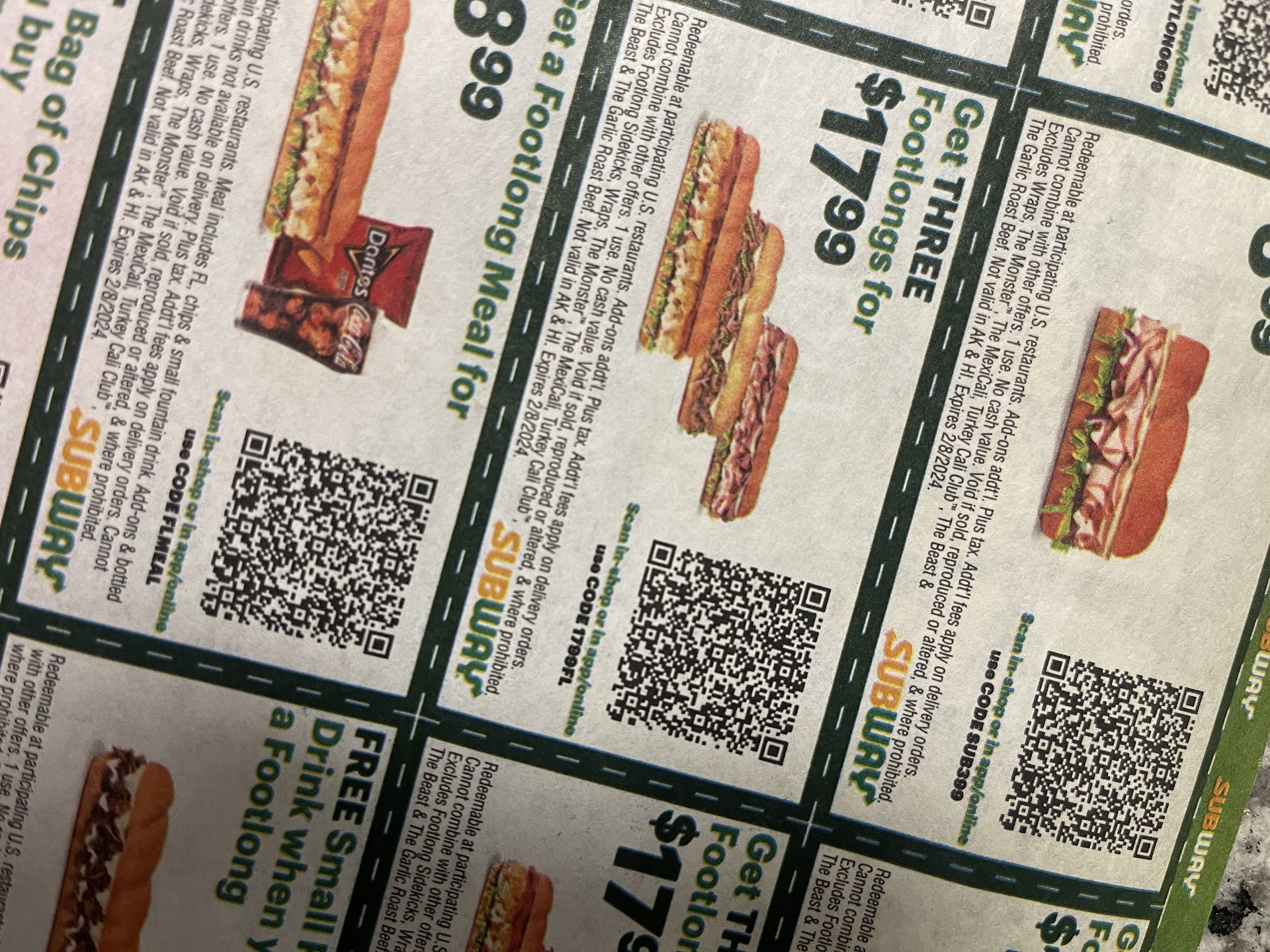 Read moreZero stars. Pathetic customer service by the lady at the counter who first argued about not accepting subway coupons and then when she agreed it appeared as if she is doing a favor. Though I had stated clearly in the beginning that I'm going to use coupons. Also, I planned to use two coupons for 2 subs that I ordered but she said that they can accept only one coupon. Also, she shouted on the young lady staff over there for adding extra cheese to the footlong and was telling me it could be a $2 charge. Avoid this subway...