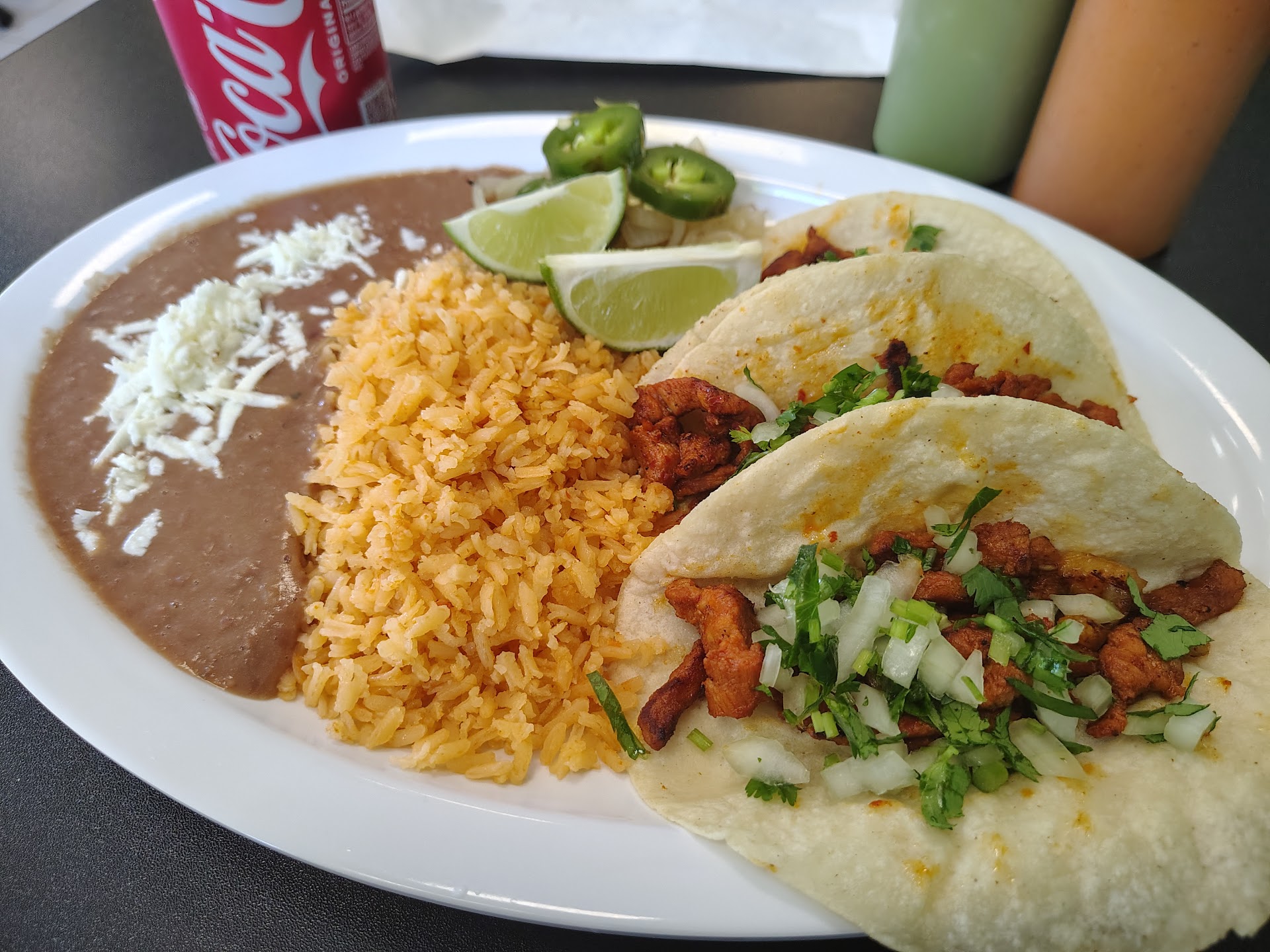 I ordered the street taco plate. It was a little on the pricey side, but did include complimentary chips and salsa which is not typical with most taquerias. The steak tacos were above average for what I typically expect. The rice and beans were good. The Mexican rice was just rice and I liked that because I don’t like vegetables such as peas in my Mexican rice.
