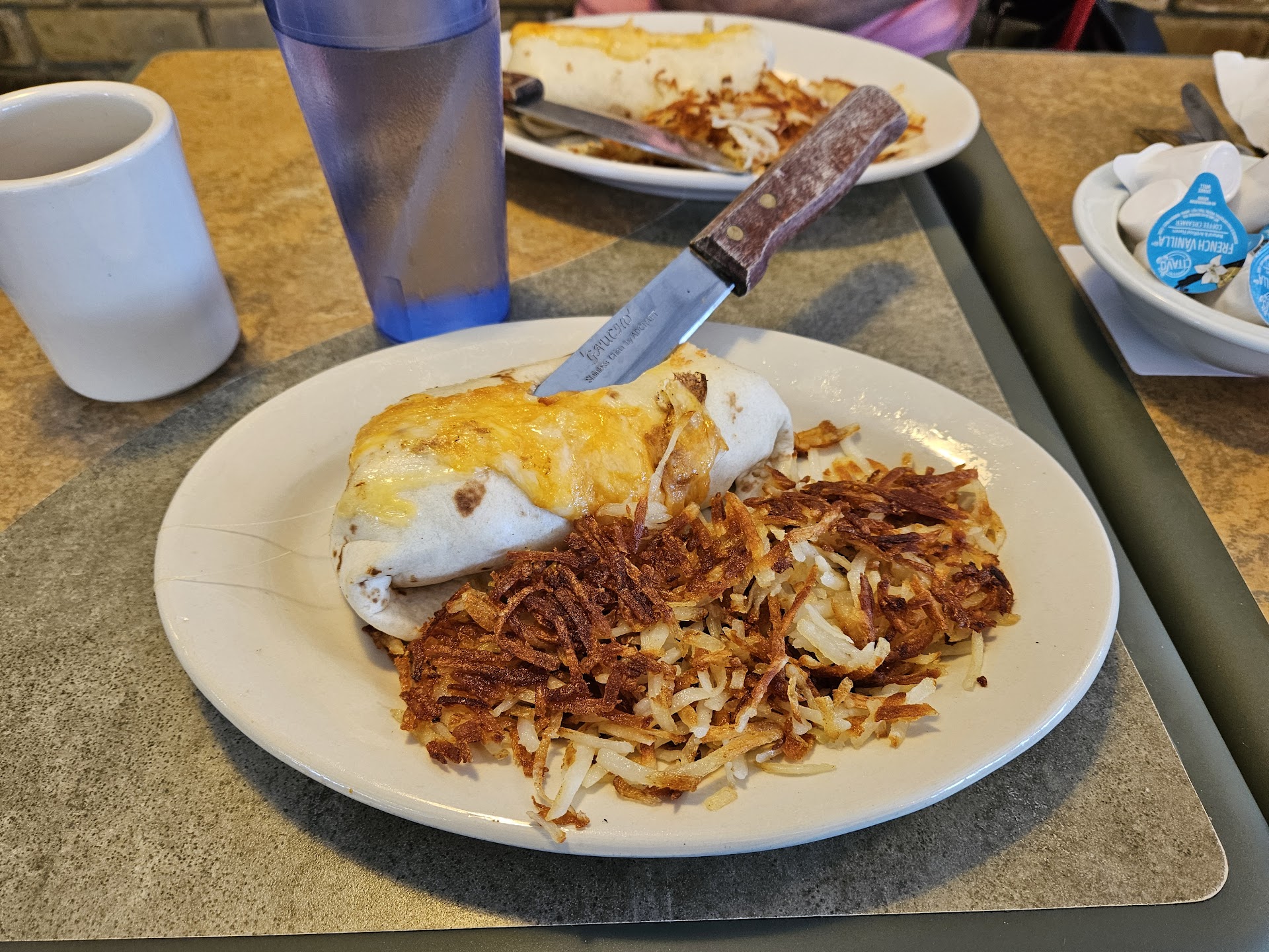 Read moreAlthough I have been here before and raved about it, today was a whole new experience. After finally being seated, we noticed that the couple seated next to us (seated at the same time as us).quickly placed their order while we waited another 20 minutes to place ours. The family on the other side of us had been seated before us but due to the slowness/inattentiveness of the server, placed their order long after us. Oddly enough, we got our food before either couple did. Table was sticky; no one asked about drinks; and we had to flag down a server to place our order. We each got the breakfast burrito, which needed something like gravy to alleviate the dryness. When it was time to leave, we had to go to the counter ourselves as no one came with the check and to-go box we asked for, despite repeated requests on our part. All in all, the restaurant was understaffed and very unprepared to handle the number of customers they had today. In spite of the large number of customers they had today, this restaurant has been in business long enough to handle the amount of...