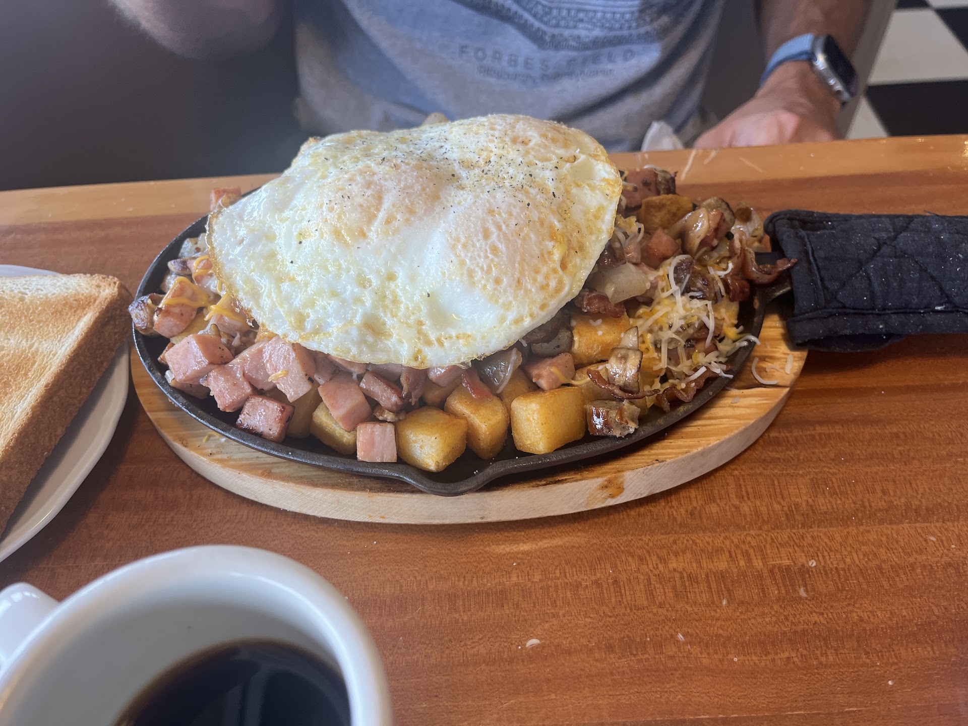 Read moreWe came on Father's Day Sunday for breakfast around 11am. The wait wasn't too bad to be seated, but the A/C was poor, and the service was horrendous. It took more than 15 minutes to be greeted by our server to take our drink and food orders. Then, it took over 30 minutes to receive our food. Some tables were raising their hands trying to get service and I had to get up twice and go to the front to get coffee creamer for the table and later to get a to-go box and our check so we could leave (even after asking the person who delivered the coffee and food). I wish I could say they were just understaffed, but there were 3 people who stood around at the front chatting and trying to hide that they were on their phones...