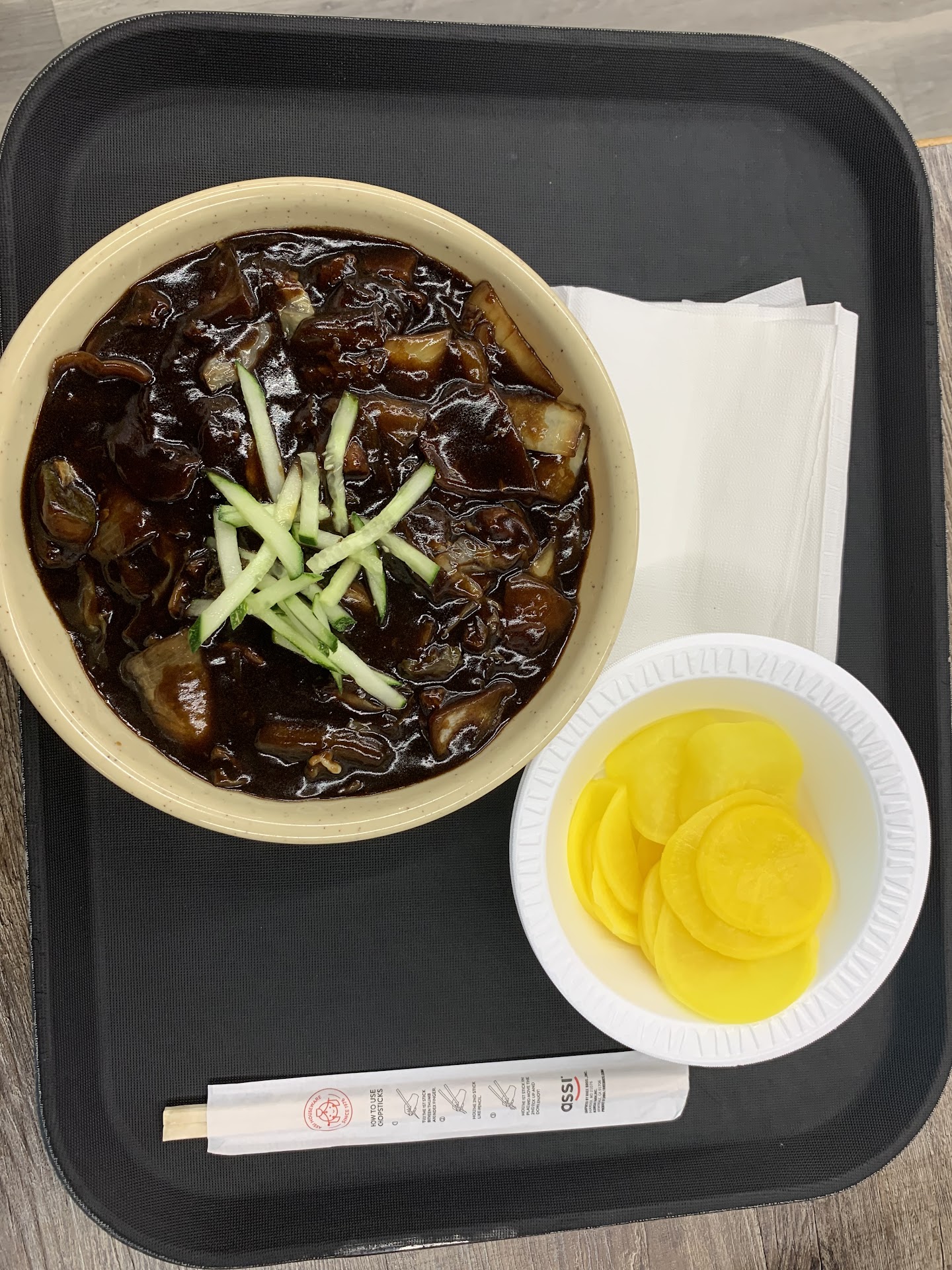 I crossed over to the dark side today and ordered the kopegki jja jjang myeon for a change. It was larger than I expected. When I was getting a little bit dry on sauce, one of the employees came out and brought me a bowl of sauce and said “you looked like you needed more sauce”, and that my friends is why you should try this place out. It is one of the only places in DFW where you can get authentic “tastes like the ones in Korean diners in Korea” for this price. The only bad part is that the dining area gets crowded sometimes and people are always walking past you because it’s near an entrance. The XL one is 13.99 the regular size one is 10.99 . Can’t beat those prices in this inflation riddled economy. The diner is inside Zion Market food court if you are confused where it is...