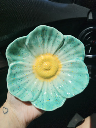 I spent a nice afternoon with some friends and my husband painting pottery here. The staff is friendly and I felt very comfortable here. My husband and I each ordered a slushy as well. He got the strawberry and really enjoyed it but it was too sweet for me. I got the Lychee and wasn't my favorite, but I've never tried Lychee and wanted to go for something new. I would've loved to have ordered some tea but there were no caffeine free options. The baked goods looked amazing, but they also didn't have options aside from coconut milk for the dessert I wanted (I can't have coconut), so I didn't get to try it. I would definitely go back to paint again. Hoping for some more flexibility surrounding the food/ drinks...