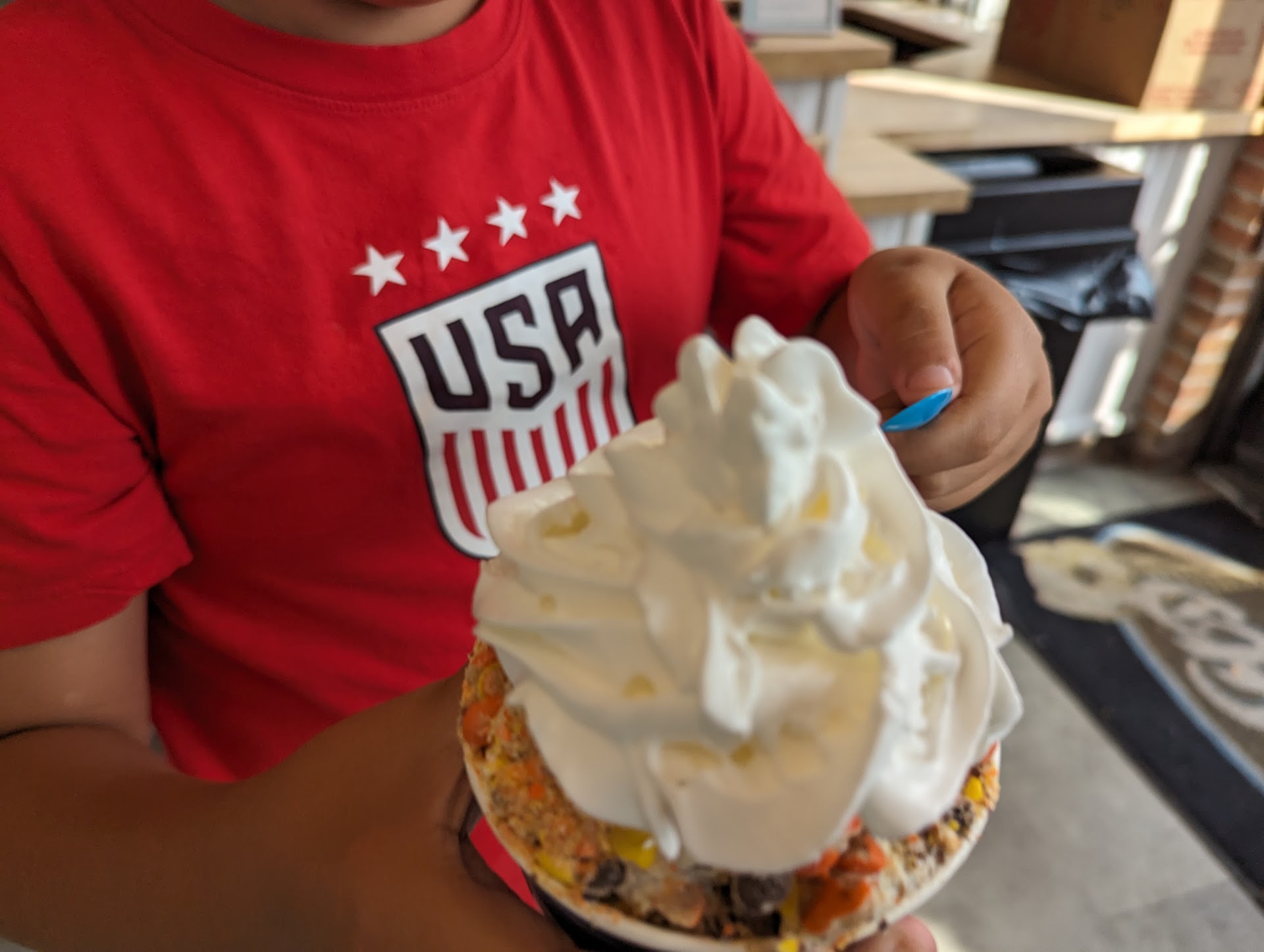 I love the ice cream here. They also have great staff. Inside the shop there is air conditioned and the atmosphere is great for people of all ages.