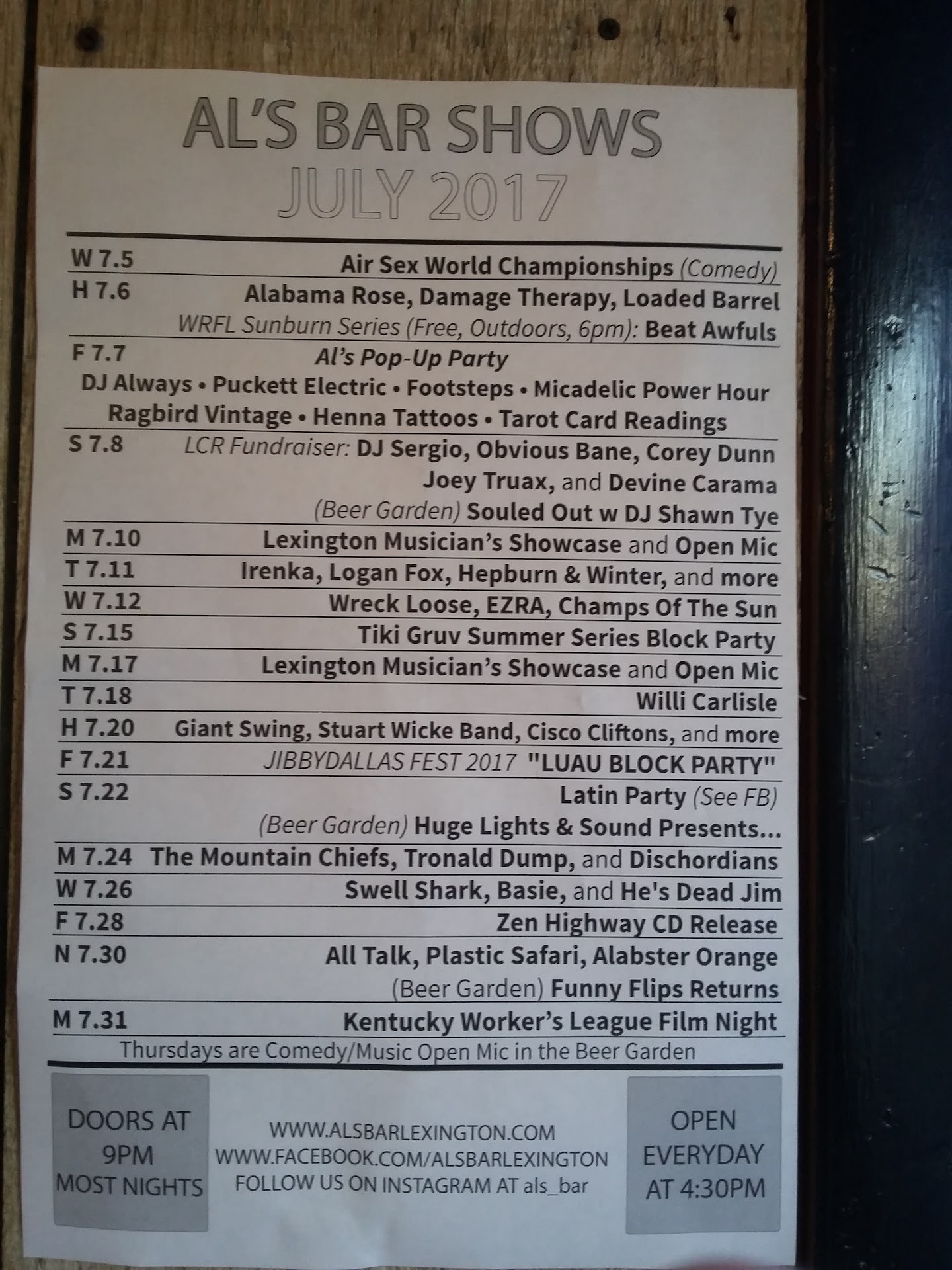 If you go there for a show, know the bartenders across the street will treat you kindly with respect. See your show at Al’s but do all your drinking elsewhere.