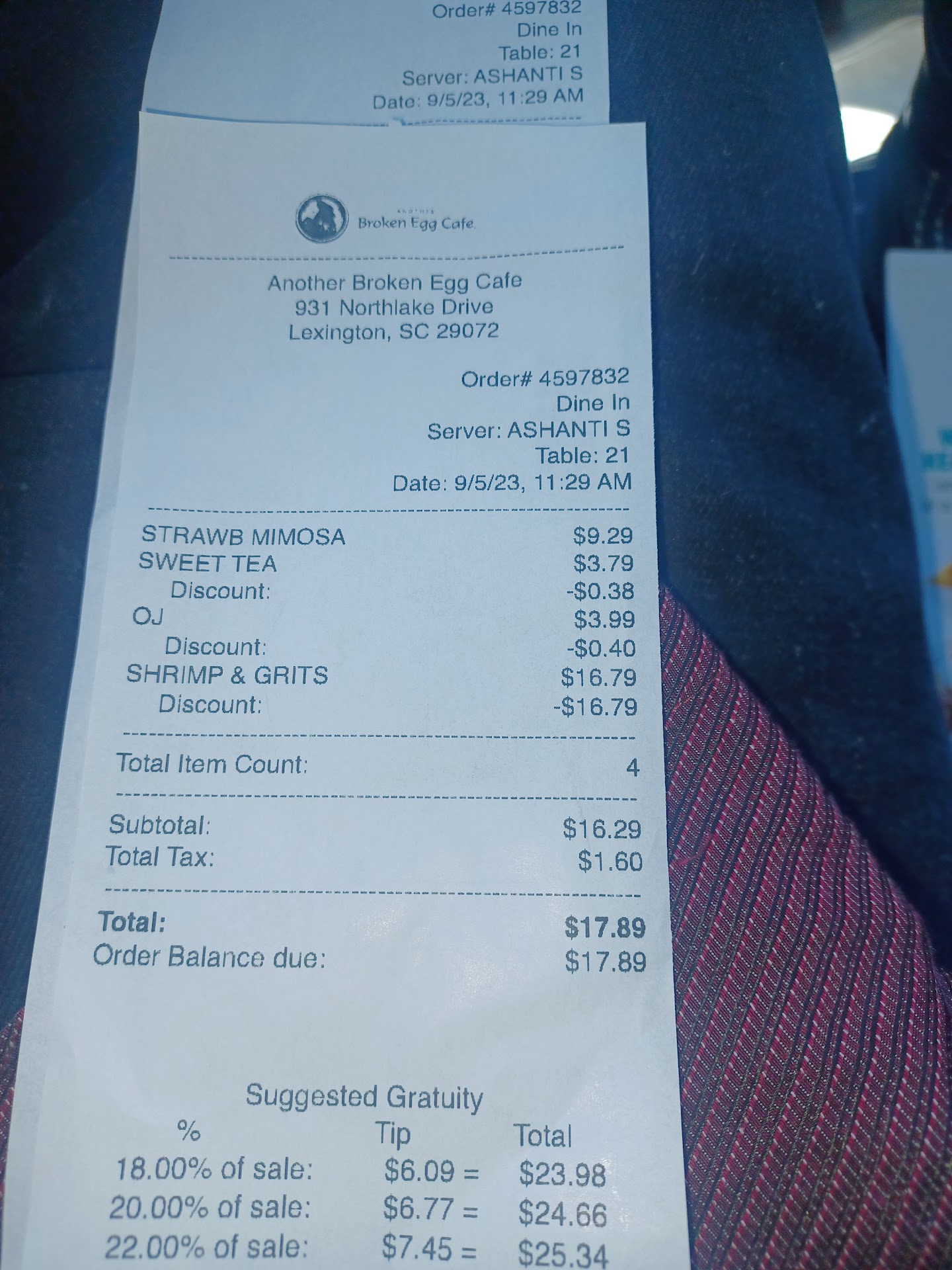 The actual food was fine, not great. Not better than Eggs Up Grill in Lexington. The portion sizes on the kids meals we’re LAUGHABLE. The pancakes were silver dollar pancakes and there were 3. I’m not sure one whole egg was used on their scrambled eggs. The bacon was one slice that had been split onto each of my other kids plates. We added cheese to our kids eggs and it was an up charge of $1 PER KID PER DISH it was added to. Each of their tiny meals was $8 due to this And that is not including the extra side of cheese grits we had to order for each kid because the portions were so stupid. It became more like $11 per kid. For a 3, 6, and 8 year old. So dumb.
