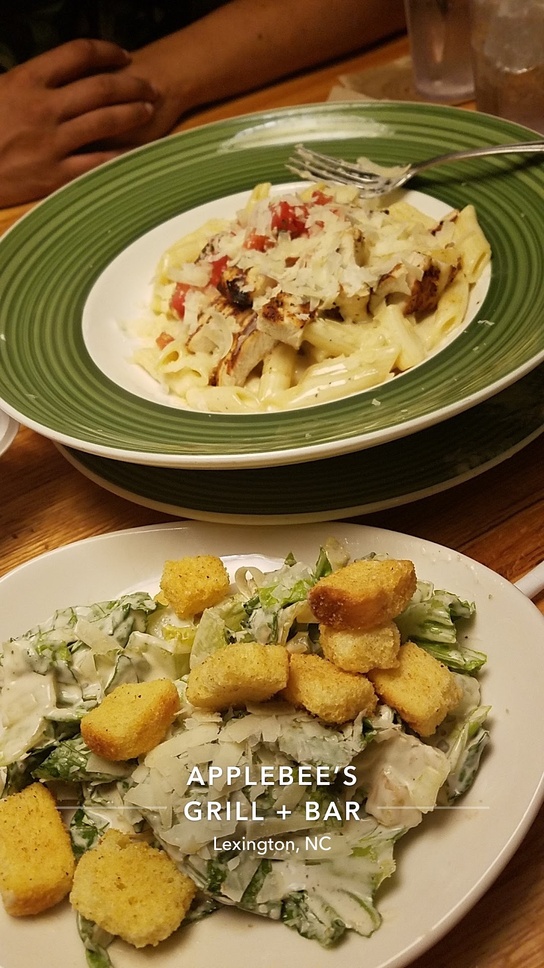 Let me start off by saying that our experience at Applebee's was extremely unpleasant, and we will not be back. If I could give it 0 stars I would. We were trying to have a nice Father's Day dinner, but instead, we got awful service. When we first walked in, there were few customers seated and many employees walking around with nothing to do. There were at least five employees in the back staring at us, not knowing what to do. Two employees walked in the restaurant behind us and did not even bother to say anything. When at last we thought we would be seated, a guy walks up and says, "I'm sorry, someone will be here to seat you," because apparently he doesn't know what he is doing and he can't seat us himself. Finally, another guy walks up and seats us. Under our table, there is an entire salad on the floor, and that kiosk thing that you pay from on the table hadn't been cleaned in years. For what seemed like an eternity, we sat there at our booth without being served at all. After at least 10 minutes a waitress comes to our table to ask us what we want to drink. She walks off and we sit there for another 10 minutes. Meanwhile, another chick walks passed us, points at us, and says "Y'all have already been greeted." As if our horrible experience wasn't enough, now we weren't worthy enough to have two greetings. The least you could do is say "Welcome to Applebee's, your drinks will be here in a minute," but apparently that's too much to ask. Our drinks finally arrived and the lady took our order. When she asked my dad what he wanted for his sides, he asked for fries and a baked potato. She told him that they didn't have baked potatoes, but they did have garlic mash. He told her that he just wanted double fries. It took an additional 30 minutes for our food to come back to us. When they finally brought it to us, they gave my dad garlic mash. When he told the lady that that was not what he had ordered, she said, "I thought you said you wanted garlic mash." No, he told her that he wanted fries about 3 times, at no point in their conversation did he even suggest that he wanted garlic mash. She went to get him some fries and it took less than 30 seconds for her to get them. My guess is that she probably found a plate of fries on another table that hadn't been cleaned yet and gave them to him because they were cold. Furthermore, I ordered a 6-ounce sirloin and he ordered an 8-ounce sirloin. When we compared our steaks, there was absolutely NO difference in the sizes, but yet they charged us full price. The food was decent, other than the fries were cold and the steaks were a bit dry. When we left, my dad informed the guy at the door about our nasty table, and he still didn't know what to do. I would not recommend this restaurant to anyone wanting to have a pleasant evening. The best part of our visit was leaving!! Applebees needs to get some training from the Chick-fil-a next door where it's their pleasure...