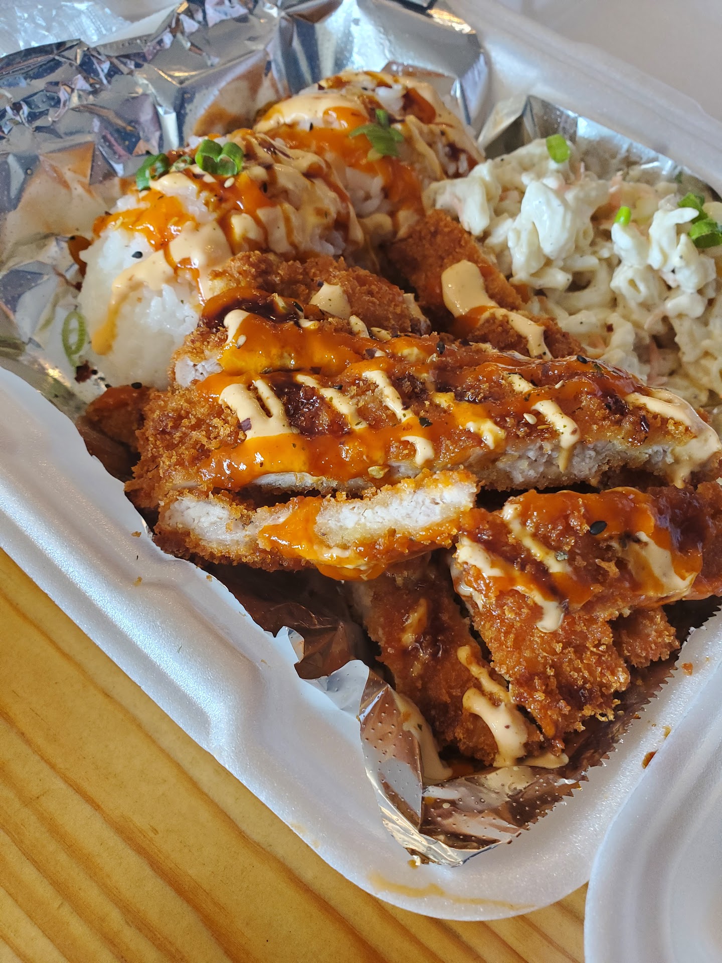 When I tell you that you need to try this food, I mean it! I never even knew this place existed until I saw a video of them and I am honestly blessed to have seen it. This is for sure going to be a regular spot for me in the future. I look forward to trying everything else on the menu. Buckle in for this rave review, words cannot describe how much I love this place but I am certainly going to try. Lets start with the resturant itself. Super easy to find because it's right on the corner, you can't miss it. At first I was worried as it looked like there was no parking lot, but they thought of the customers and placed a pretty easy to see sign pointing to parking in the back, a very thoughtful touch. The inside is decorated very well and is super clean. It wasn't crowded at all but had just enough other customers to give it a nice relaxed atmosphere. The staff? They could give chick-fil-a a run for their money. Never have I had a cashier so kind and attentive. She was incredibly patient, knowledgable of the menu, and even made sure to check on us throughout the meal. Although I did not speak to the chefs they did their job WELL and very quickly. We barely had to wait for our food and it tasted like they had worked hours on it. Now obviously that leads us into the star of the show; the food. Prices? Very reasonable and great portion sizes. My partner got the pork katsu sandwich (super moist and crispy at the same time) and the Hawaiian style fries (I do not care how much food you have already, just order them you can thank me later). I ordered the "Juicer" Mahi mahi sandwich (blackened fish, and that spice level is NOT for the weak of heart. Luckily I love spicy food so it was a home run for me), Mac salad (I don't like any pasta salad but this? I could have just a bowl of it and be happy.), coleslaw on the side (not a cole slaw fan but it definitely tasted very fresh and my partner loved it so I can see the appeal), and the spam musubi (straight perfection. I could have this for breakfast, lunch, midnight snack, whatever and could never get burned out.). The best local spot I have been to in a long time, not your typical resturant for sure. In case it wasn't obvious, I HIGHLY reccommend...