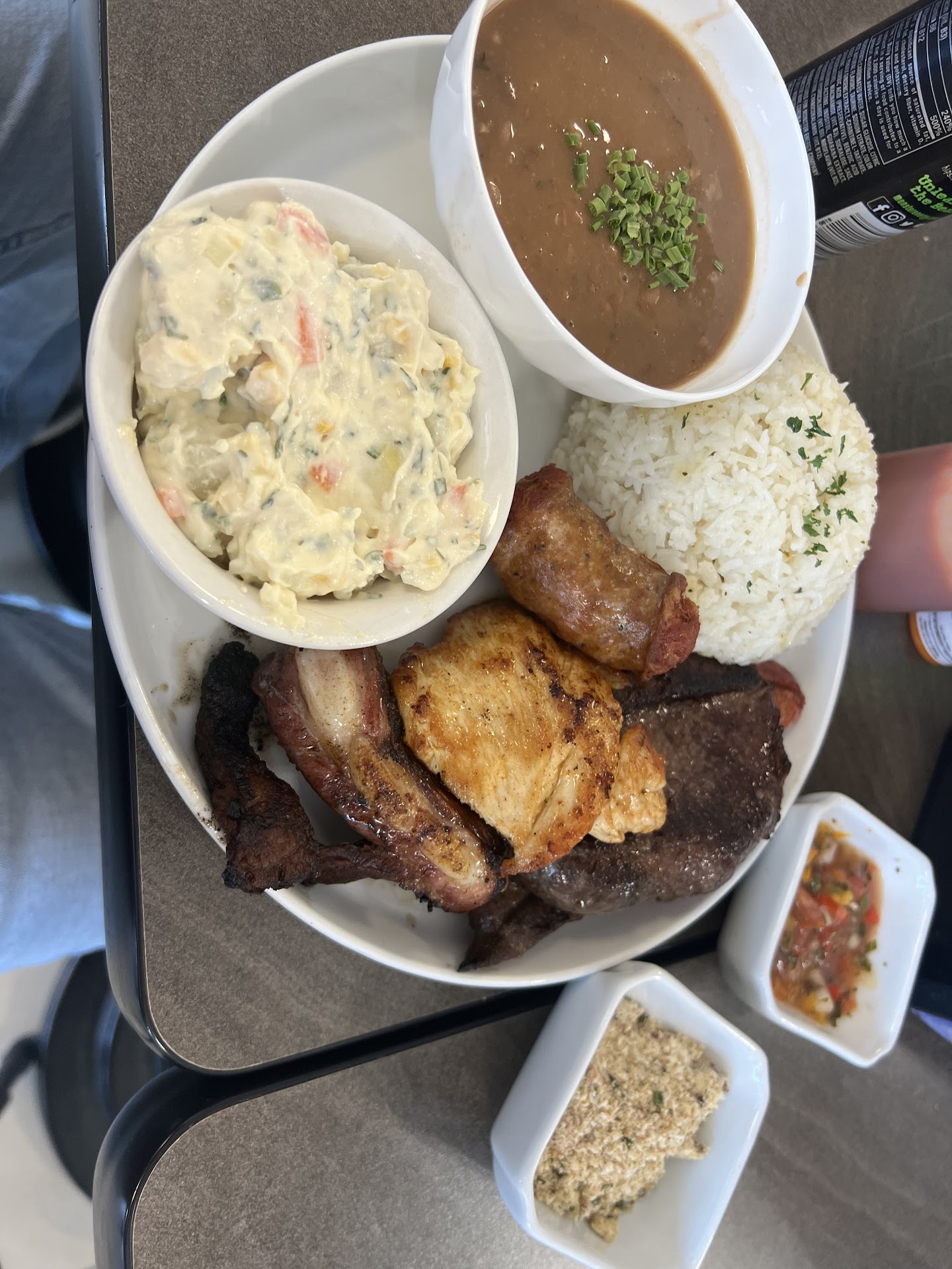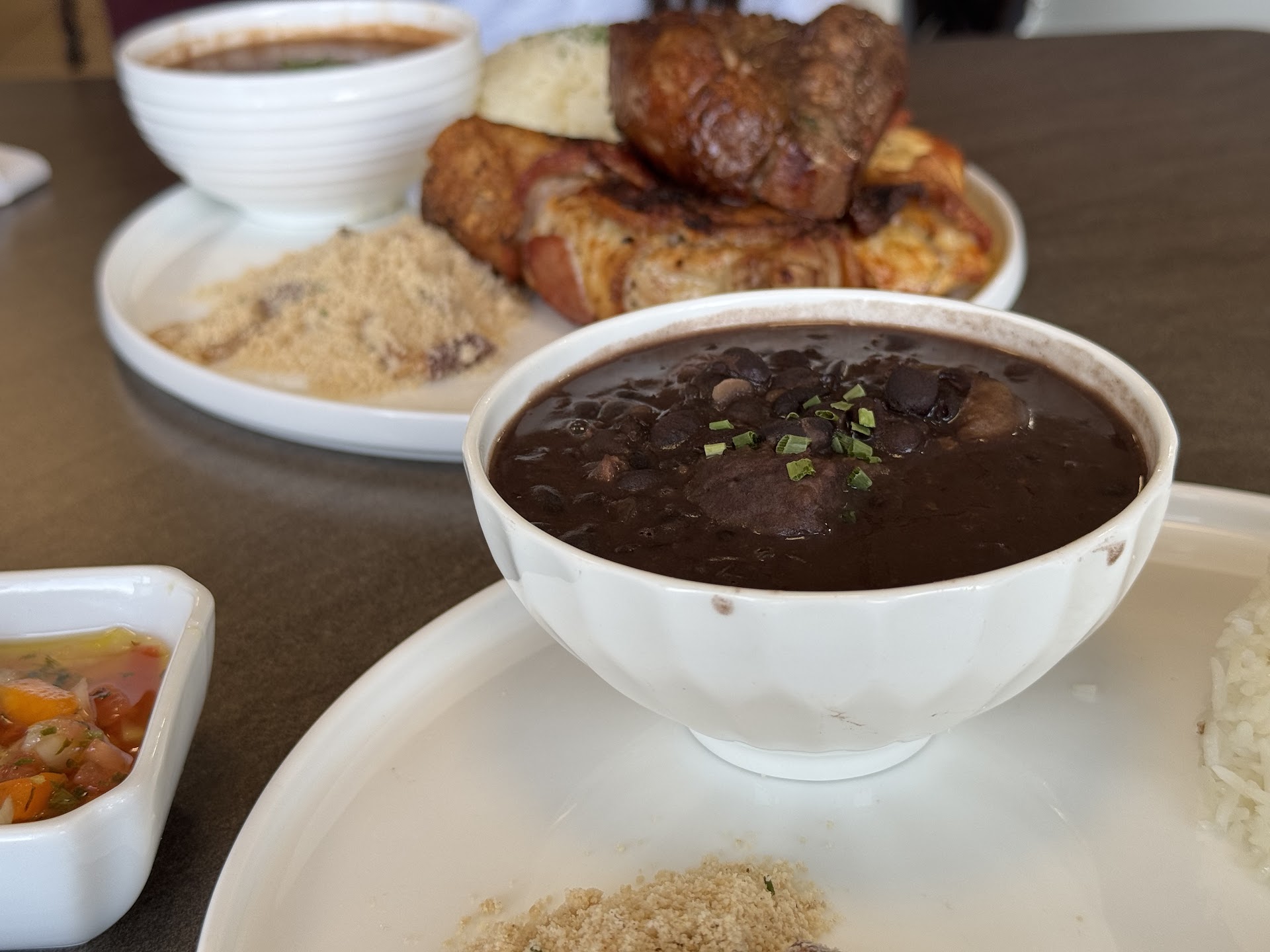 I ordered feijoada $19.99 version and it comes with the potato salad, rice, feijoada, vinegar salsa and greens. Looking back, I feel that it is not as great of as value as the other item on our order which was the "BBQ". It was all very good. Had a home-cooked feel, great flavors, hot and the quality of the meat used was great. Tender beef in the feijoada and flavorful beans.