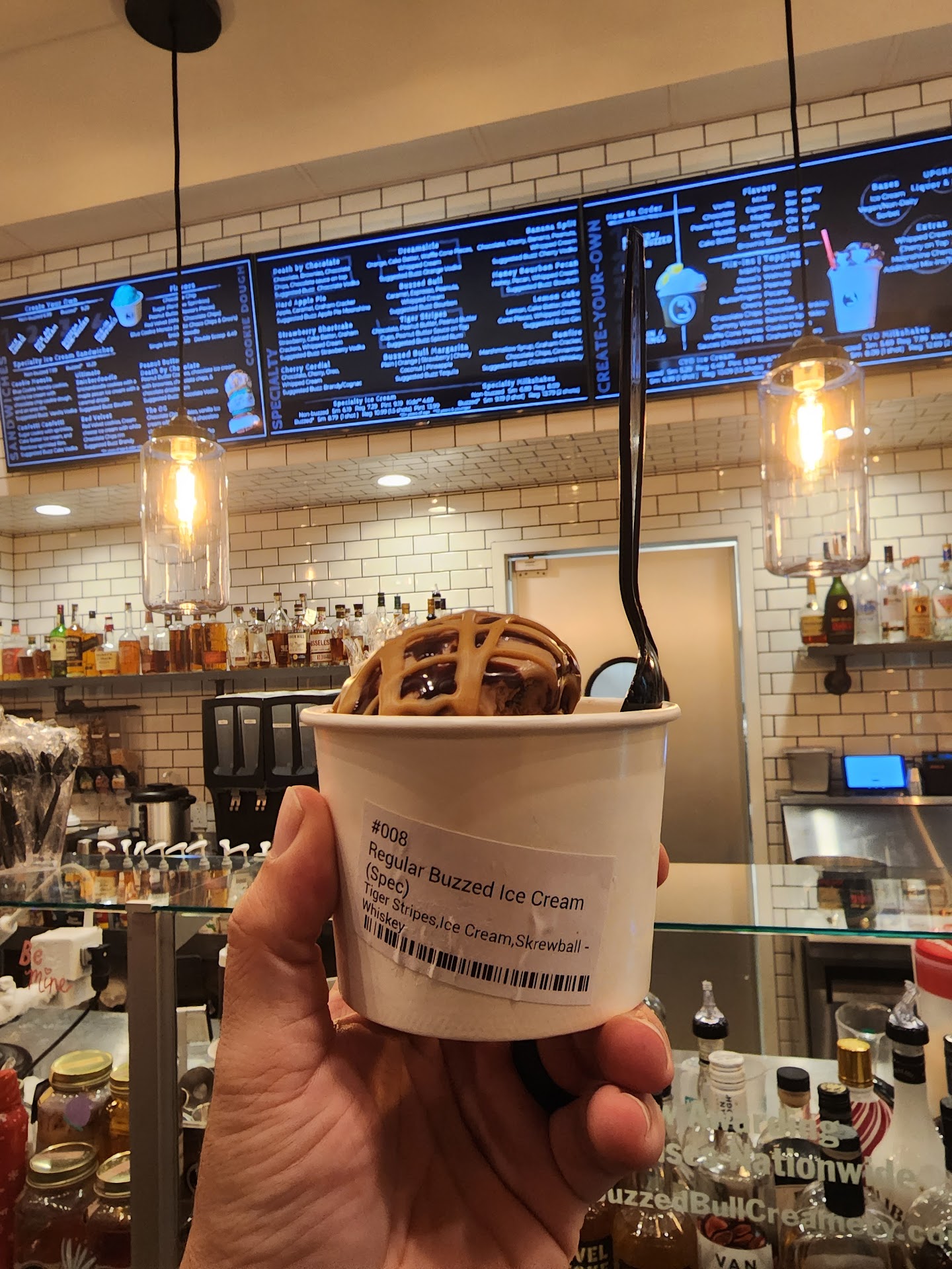Neither Ice cream came with the toppings that were supposed to be on it. One of them went in the trash because the alcohol was soo strong there was no flavor whatsoever, it was just bad. The other one was not nearly as strong on the alcohol taste, but it wasn’t very flavorful and was nothing special. I usually love nitrogen ice cream but this was not as good by far. We didn’t even finish the other one because it just wasn’t that good. It has no flavor.