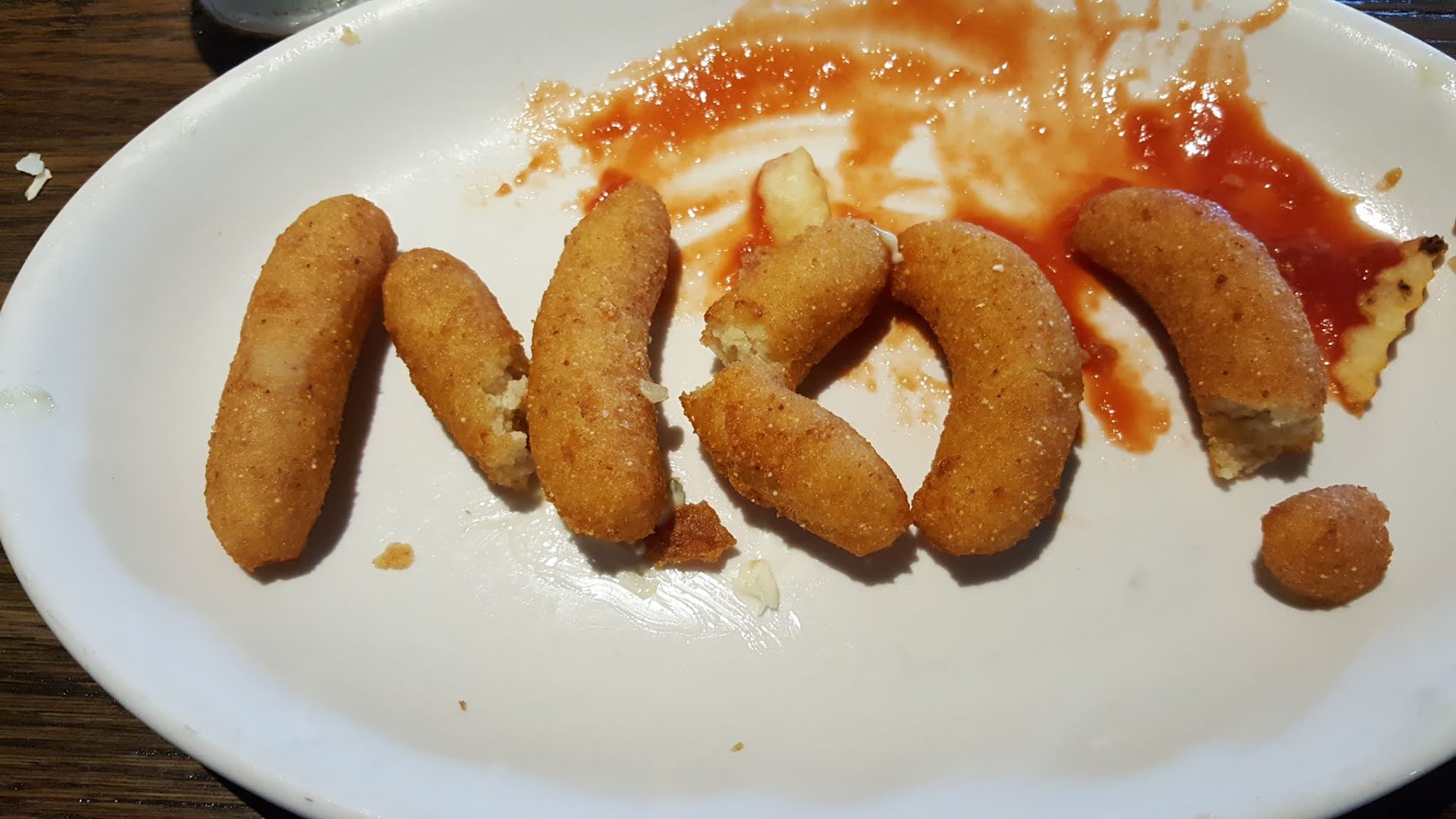 The food was better this time, though. Portions were generous. Fish and shrimp were good. Coleslaw and fries were good. I ordered oysters, but they were out. Cocktail sauce could use a bit more horseradish. Hush puppies were... well... maybe they are an acquired taste. They are too dense and tasteless for me. (See picture and read the message)