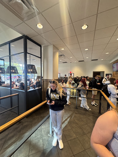 Read moreThis Chick-fil-A is so yummy but busy with a long line. It often takes a hot minute to get food but the food is always good. It is a good spot to sit down with friends and just chill and I love to sit outside. I tend to go here for lunch more than anything but I love the breakfast chicken minis so much. If you get grilled nuggets they might not give you a fork so make sure to ask for one! Also, it's listed they have a diet Dr. Pepper but they do not so take note. The food is good and gets the job done! It is clean and does not smell! The nice thing is that there is a built-in and multiple koskis so it makes the ordering go a little faster. It also texts you when it is ready! Just have some patience and plan accordingly if you plan on going before class or a...