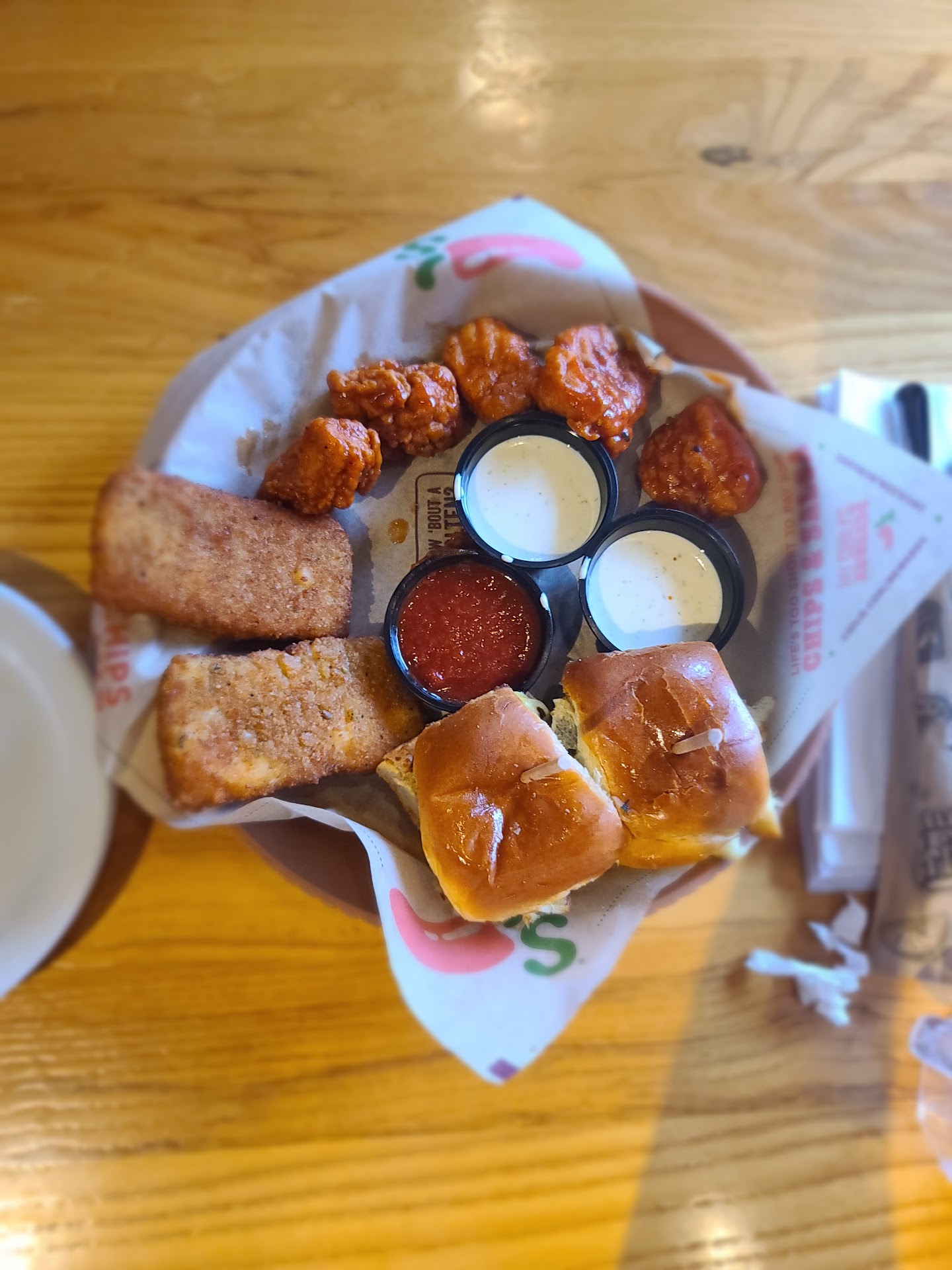 Upsides: The customer service was on point. Claps to you guys! Literally everyone there was super warm and friendly, smiled, and made us feel welcome. When we had an issue with the soda syrup running low, they changed it and gave us a fresh refill- no questions asked. Our main courses were both really good! I have bacon chicken ranch quesadillas and my boyfriend had the secret sauce burger. I assume these were the only two things made fresh in-house.