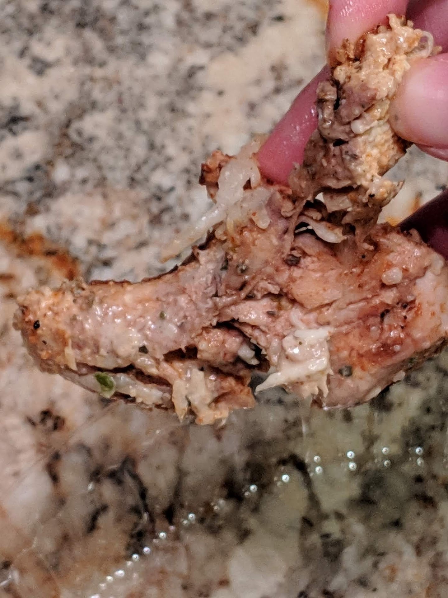 But everything else? Meh. Ask for your cheesesteak sandwich sans 'cheese'...it's just a gooey Kraft single. Like...I can do that at home. And forget the salads; unless you request the dressing on the side, something like the Cesar salad is going to be soggy as all get out when you get it home, even after the most modest of drives. Pictured in this review is what is very obviously a quickly made salad, with chicken vein still attached to several pieces of chicken. For a place that knocks out wings like there is no tomorrow, it's disappointing to see them fumble the other parts of the bird so badly.