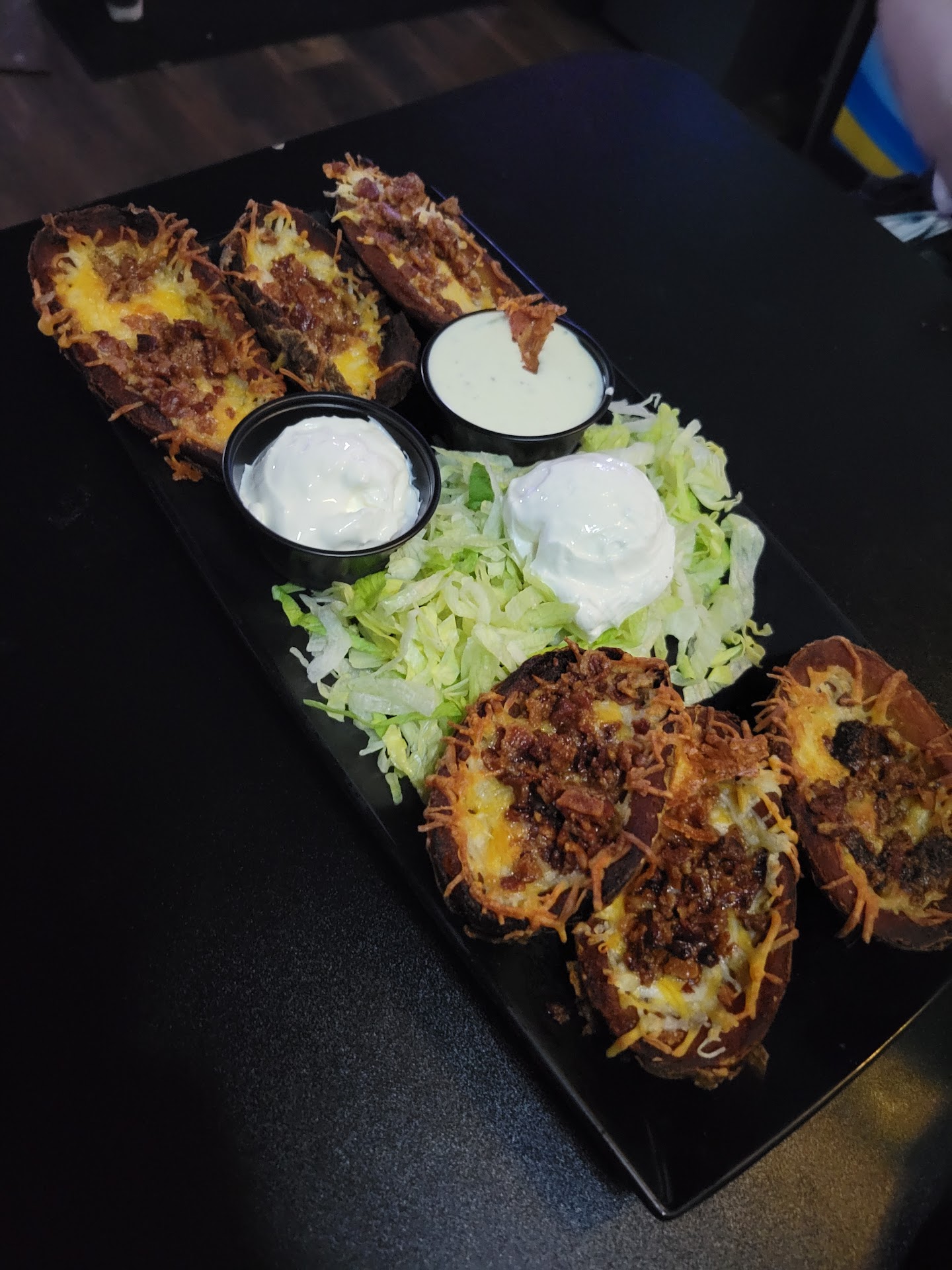 Ā Ā Ā Read moreReview 8.12.2025 We tried this restaurant for the first time, and the last a couple of weeks ago. I want to start with the very first impression. As we found a table and sat down both our table and my chair were not balanced so they were wobbly. My husband and I could tell this is a āregularsā hangout. The waitress (the only one for all tables) knew many other customers by name. When she was moving, she was hustling but she would stop to chat with the āregularsā. Our drinks ran dry more than once and it took a bit to order. They advertise āAll Day Brunchā on the menu but when my husband ordered a Breakfast Burrito we were informed they were out of eggs, which is in all but one brunch item they offer. The menu just says āChickenā. It does not indicate the kind of chicken, which we found out later were wings. The flavors/sauces were also not listed. After we ordered we had to wait quite a while. A guy who entered 15 mins behind us had his food before we even got our appetizer. The appetizer arrived, and as you can see by the picture, one tater skin had no topping (other than cheese).. The table two over actually ended up sending their meal back but I canāt speak to why. My husband liked the flavor of his wings. My meal was much more underwhelming. I never had a Philly that I didnāt like, until that visit. It was under seasoned and flavorless while the sweet potato fries were...