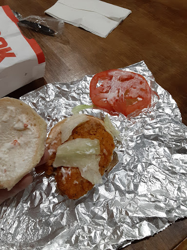 Two stars means that you came in under my expectations. I frequent this cookout location. It usually barely meets my expectation (which is low, and therefore not difficult to meet). However, I've been increasingly frustrated recently and yesterday I finally decided to review. First I'd like to Express my frustration that we are still not able to go inside to order, making the drive thru a 15 to 20 minute ordeal EVERY TIME. Either let us inside or figure out a solution. Alass, I continue to go back although recently I just skip it and go somewhere else. Last night I ordered a chicken sandwich with no tomato. A simple order. As you can see I got tomato. Also as you can see it's quite possibly the smallest piece of the bottom of the barrel lettuce I've ever seen. How does one make it in life if they can't even manage to put together a decent sandwich correctly. This isn't the first time my simple order wasn't fulfilled correctly. If getting a meal is going to take 20 minutes then be wrong, I'll just go to a restaurant where I can sit down and be waited on in an establishment that will get my...