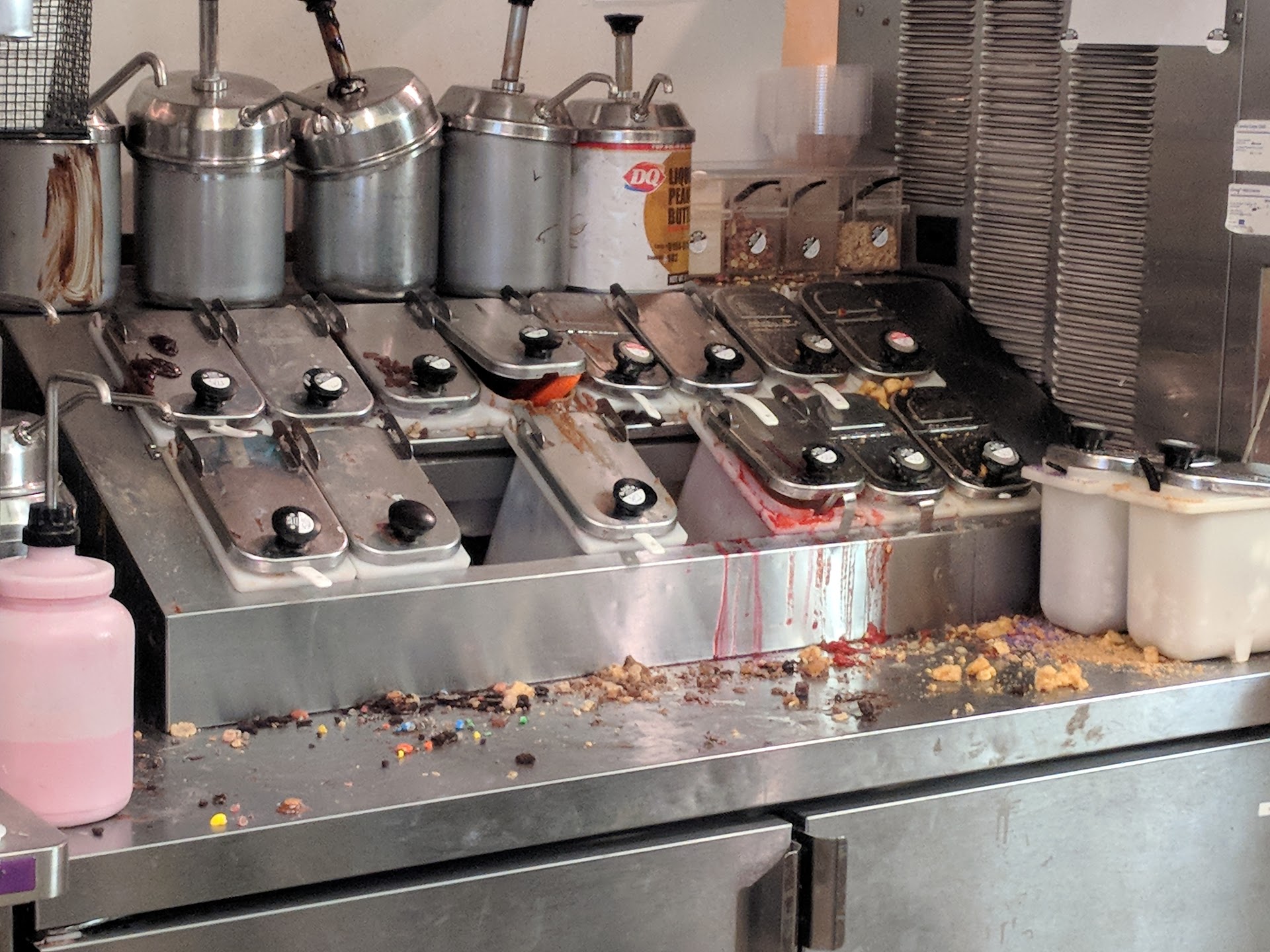Read moreOn 3/30/2021 I went to this location to buy a banana split. When I got to the location the drive thru was wrapped around the building. I spent 15 minutes waiting in the drive thru when I noticed people coming out of the lobby. So I went in. The front line was a disaster. Milk was laid out, the work areas was messy with food and trash. While in there it took 10 more minutes to be waited on with 4 people on the front line. I had to ask to be waited on. When I tired to order I was told that they where out of bananas. I was a little upset due to waiting over 25 minutes at that point so I changed my order to a Strawberry Sundae. The only good thing was how fast she made my sundae. Once I got my food and left I noticed a family of 4 walk in while I was leaving and a few seconds later they walked out and at 835 I saw a employee try to lock the doors a couple minutes later after that a man with his young daughter walked in and they were told they had closed the lobby. The lobby hours are till 9:00 PM. The Man and his daughter walked out with the little girl crying due to they were refused service during posted business hours. I finally at 8:45 was able to leave the parking lot but before I left I seen like 10 to 15 cars leave the drive thru. This was the worst ran drive thru and lobby I have ever seen a DQ ran before. I hope the GM is able to correct this because...