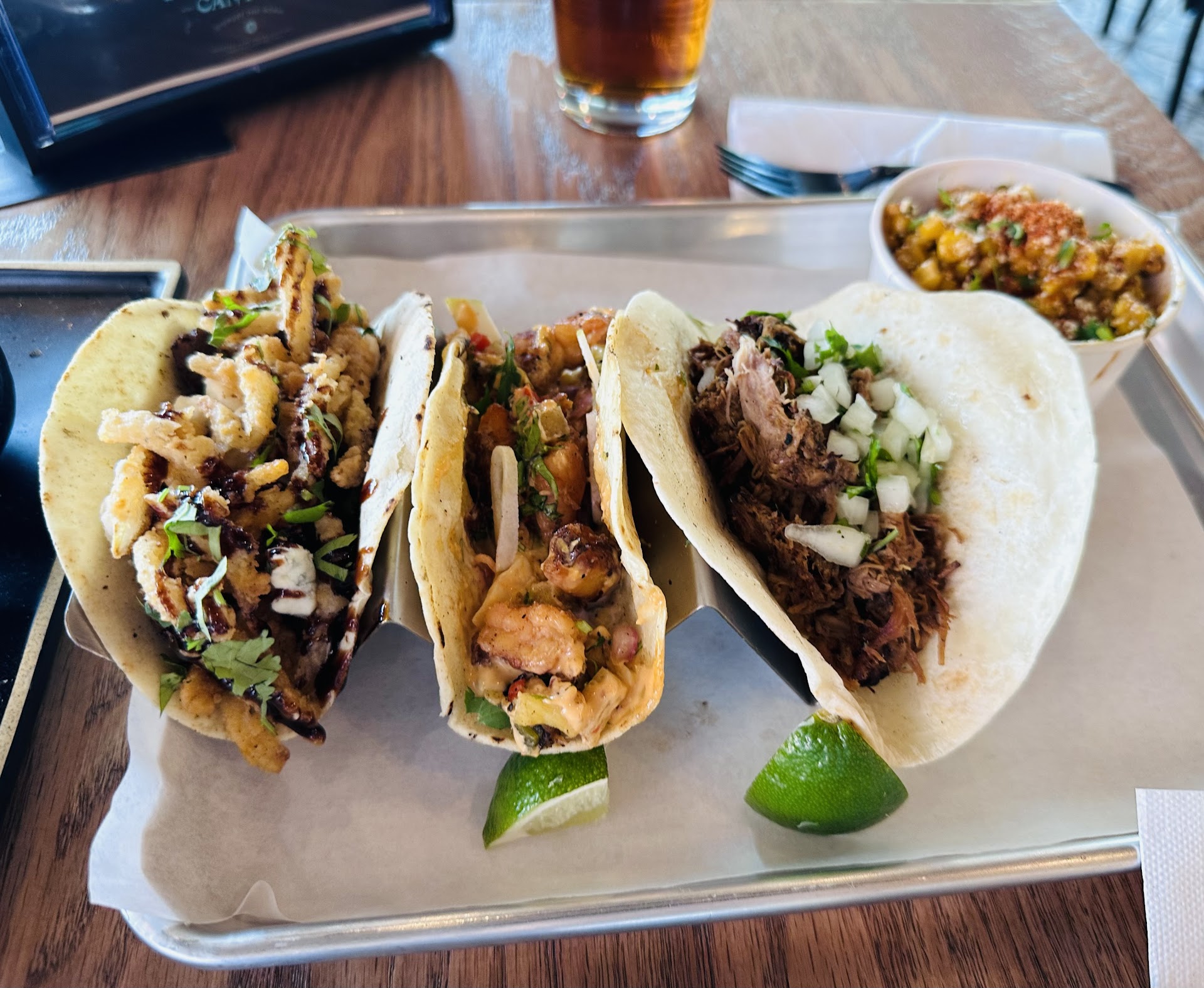 Read moreUpdate 03/2025: after a not very pleasant first time here, we decided to give it another try, and did not regret it. Great improvement on food and service. This time we had champú shrimp, rajas, pork belly, pollo, and al pastor tacos, with a side of elote (corn)… and we went for a second round! This is why one should not make final decisions over a first impression. Glad we returned! First time here, not sure if returning. We feel is pricey for quantity and quality; an $7-9 taco should look and taste a bit better. Ambiance is nice and inviting, cool enough for decompressing with a drink after a long work day/week. Regarding the food, we ordered 4 tacos, 1 soda, and 1 side of elote, and received 3 tacos and 2 sides of elote. Had to ask to the cashier if the soda was included in the check because he never gave us a cup. My husband went back to register and asked for the missing taco, which was brought to us shortly after. Service was plain, not very friendly. We had the Steak & blue, Carnitas, Chamoy shrimp, and Huitlacoche tacos; steak, shrimp and carnitas were good, huitlacoche was VERY salty. The first 3 tacos were served in the same tray, which we didn’t understand, but we were explained by a manager that that is the way they serve them, which didn’t make sense to us, but this is just...