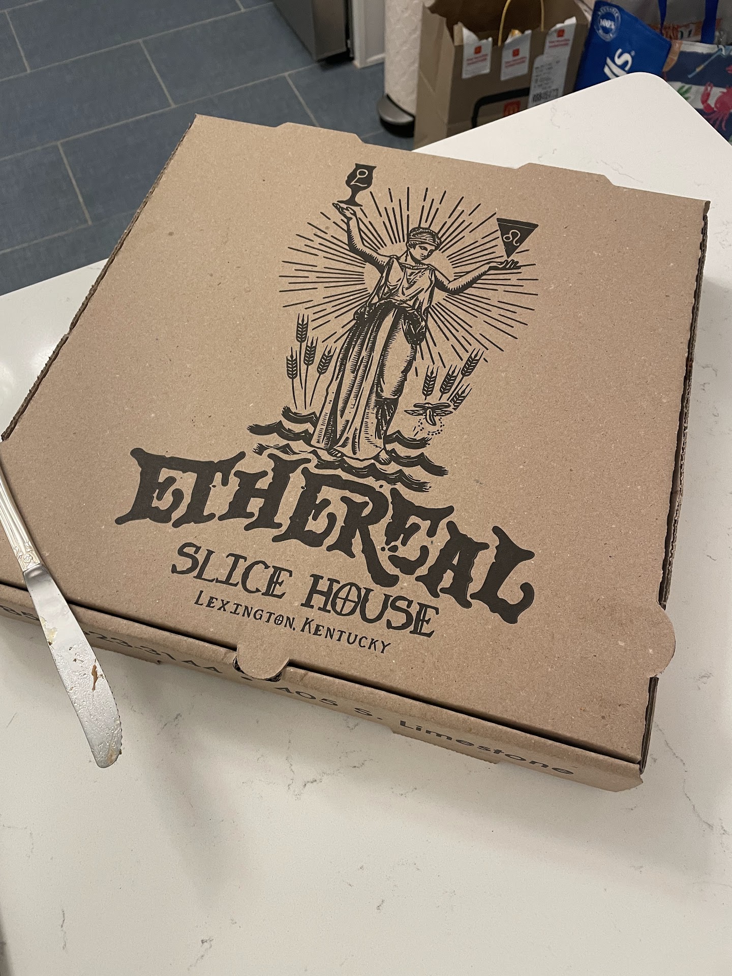 Read moreWhen I first tried Ethereal, I thought it might be my new favorite pizza place in Lexington since my previous had just closed. Great crust, great toppings, and a nice side of ranch. Just good all around. However the employees seem to really hate working here. Not their fault, likely management. Either they are clueless as to if the food has even been made and can't find it, or they are straight up rude. Went to pick up an online order once and a guy brushed me off saying to order online and walked away.