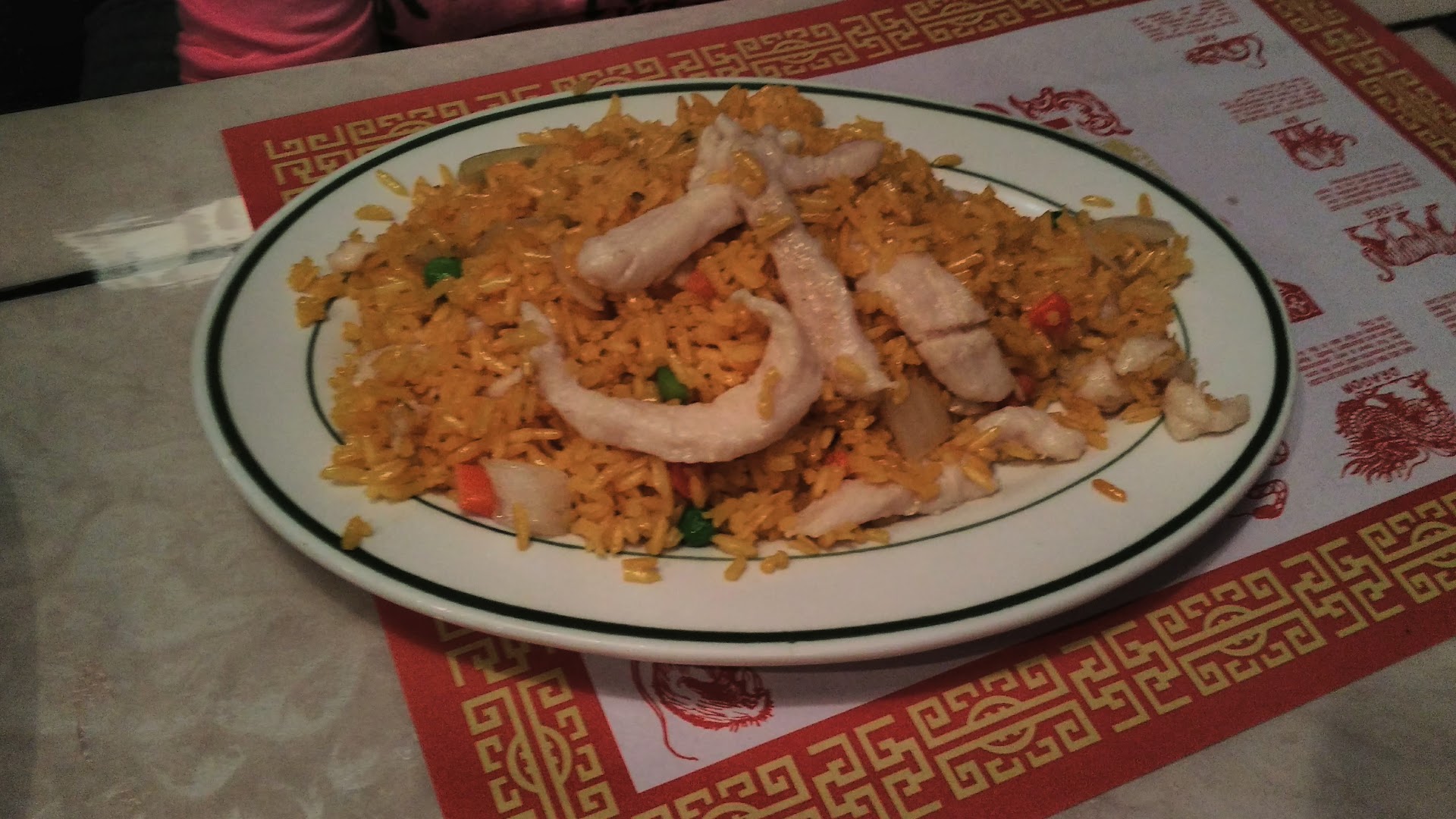 Just ordered carryout for the first and probably last time. I ordered sesame chicken w/ fried rice, crab rangoon, and hot & sour soup. The soup was decent. It had plenty of vegetables in it and it had flavor. The crab rangoon wasn't even crab rangoon -- I guess they didn't seal them properly, and all of the filling poured out into the fryer, because all I received were empty fried wontons with a hint of filling (pictured; all ~6 were like that). The sesame chicken was pretty bland, but otherwise okay -- disappointing for an entrée, though. The fried rice was similarly quite bland. I wouldn't eat it on its own, but it's at least not dry, so it's good enough for mixing with your entrée's sauce or whatever. Overall, the food was bland, lacking in quality, and I was pretty disappointed by the crab rangoon. Would've given 3 stars if not for that. My food was ~$21 altogether, with tax (the sesame chicken included the fried rice; the rest were separate). It was enough food to ration into 2 meals, but I can't say I'm looking forward to the leftovers. I've certainly had worse, but I don't see myself ordering...