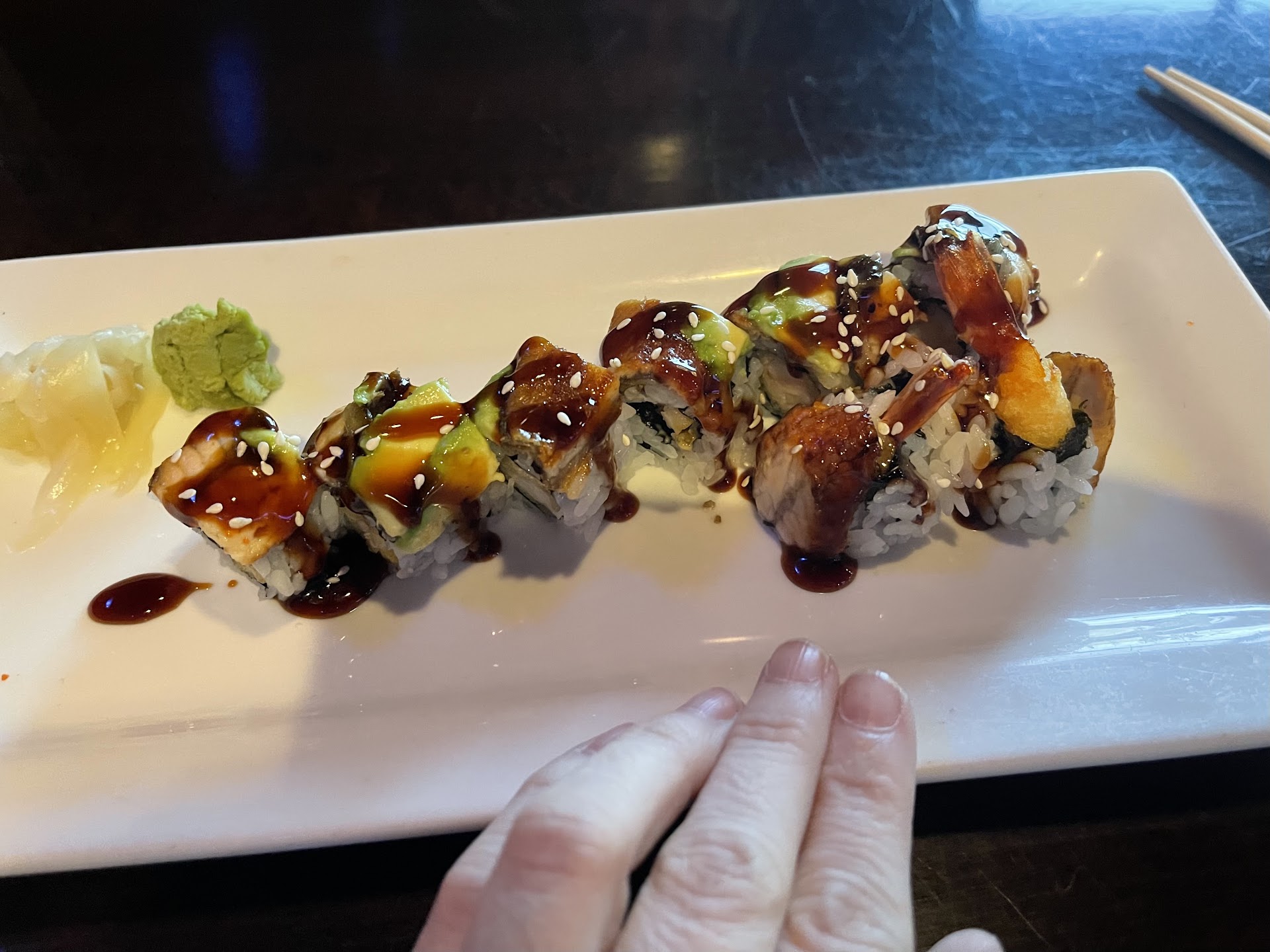 About 15 minutes go by and we received our hibachi entree. While she was serving it to us she spilled my husbands beer all over the table and into my orangtini, they couldnāt replace my drink because they ran out of oranges, which was odd because oranges are a part of this cuisine as there were oranges in my hibachi plate. So at this point we are wondering where our sushi is as typically it comes before the meal, not after like a dessert.