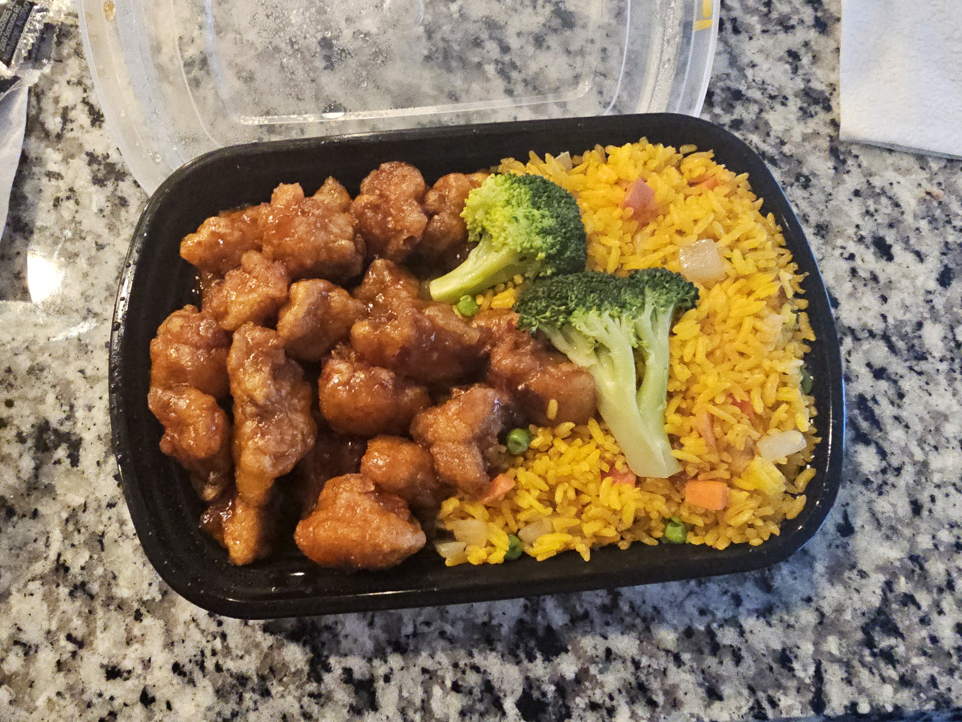 As far as the service, the service was exceptional. Wasn't a super long wait for the food, then again it was a stormy night and like I said, business was slow and hardly anyone was there. As far as the food goes, it was OK. Not great but not terrible, I agree with the other reviewer, the food is of a typical food court in a strip mall. Stereotypically standard Chinese restaurant food, yellow rice with vegetables (peas, carrots and onion).