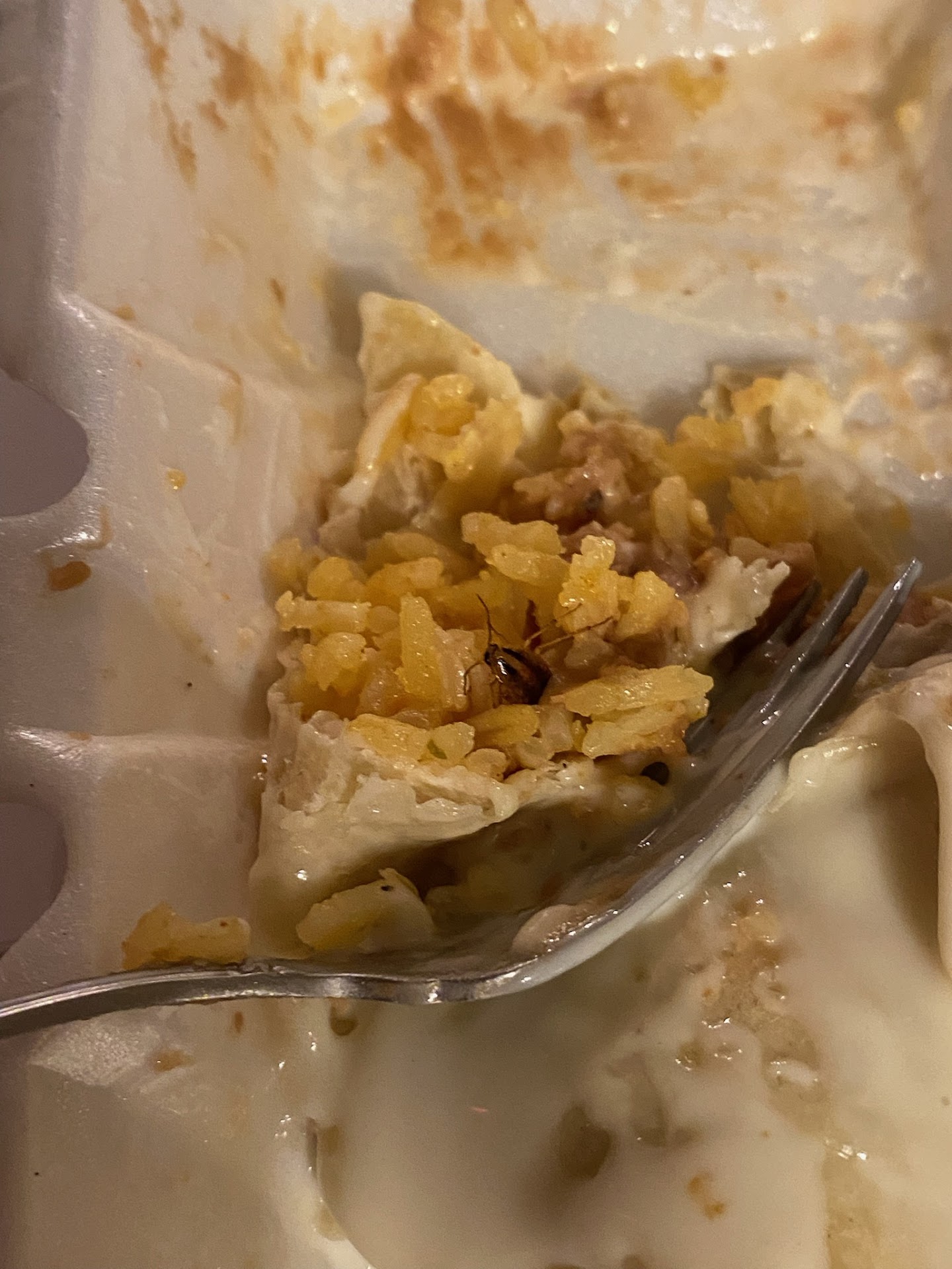 I have struggled with posting this review, but people should know. I understand that restaurants have bugs, but to make it in the food and out the door! Roach was found in my daughter's burrito! My food wasn't the best either I got chipotle shrimp the shrimp seemed ok but the mushrooms tasted like they were off. My husband was not excited about his fajitas either. The lettuce guac and... Idk there was a ROACH in my child's burrito! She is scared of bugs and will probably develop some kind of eating disorder from this which happened on Dec 27th they did issue a refund and were apologetic. However, the 45 min round trip (yes, I live in the middle of nowhere near the river) there to pick up the food and the 45 min trip to get refund and return all the food that was left and even left the fork right were it was mid cut (once the thing was found because everyone just stop eating once she found it) and the trauma on top of that was not compensated. Yes they kept my fork when the cashier tool the to go plate to the back and I didn't want to stick around and aske for it back because I was fighting back the urge to show the patrons waiting to be served. I truly feel bad to leave a bad review but people should know how man people are out of that same vat f rice that had the roach cooked in it? I might stop back by in a few months and agian I understand that all restaurants have bugs but not all of them have them in the food. I was grateful to get my money back It is hard for me to leave a bad review I mean look at all the other reviews I have given and will change or remove my review after a month or two because that gives them time to fix whatever issue they are having. Photos we're taken by a preteen focused on the bug because of...