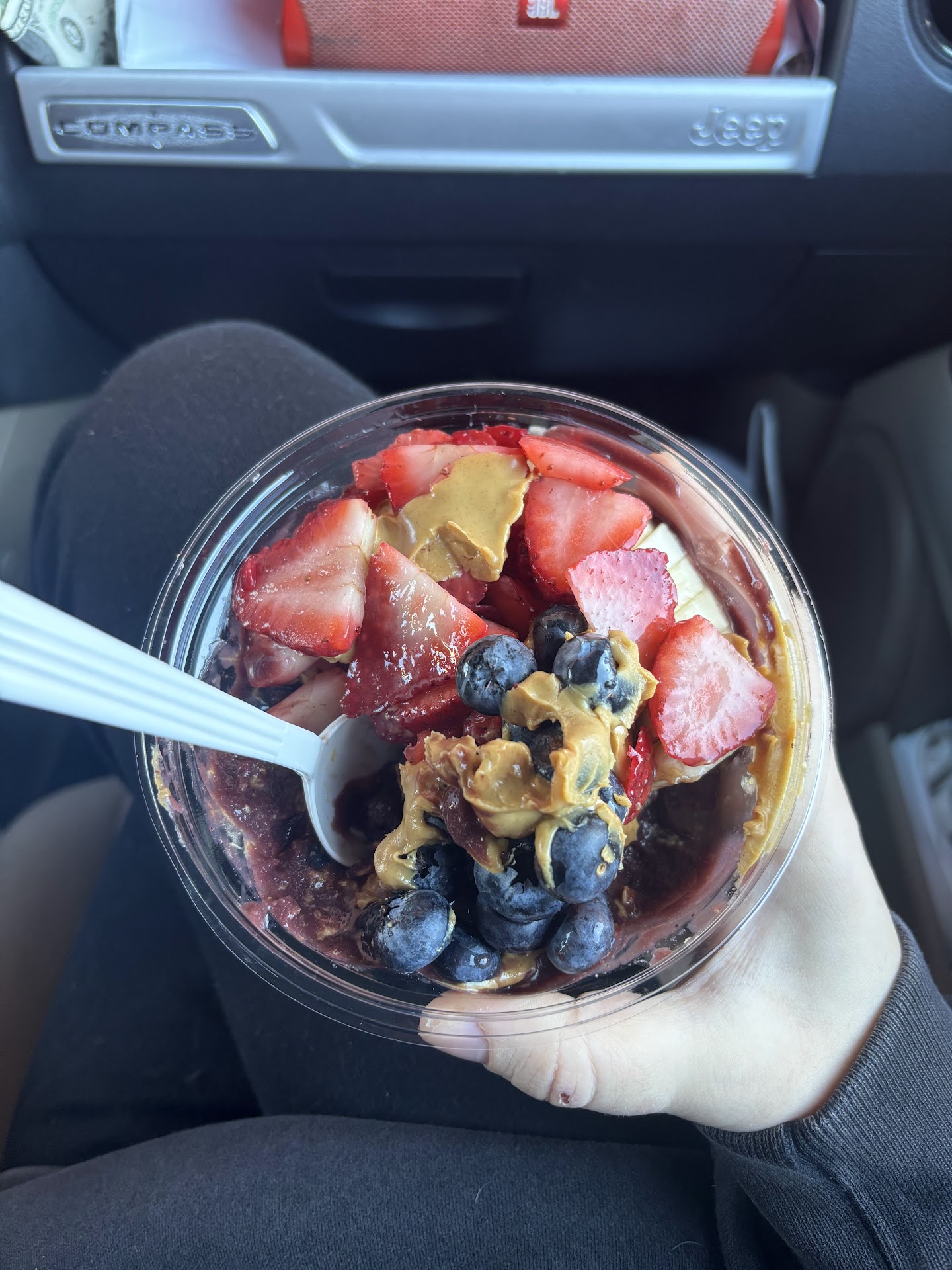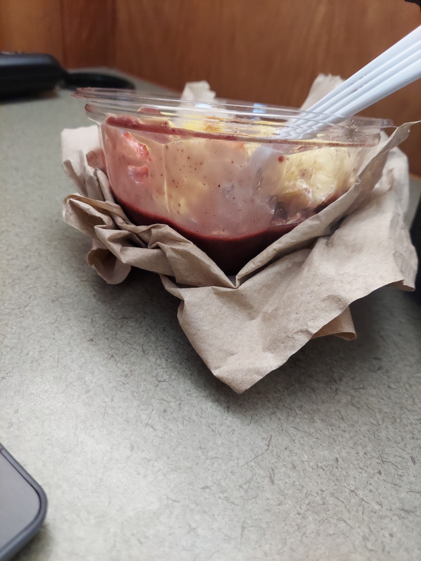 We finally got our smoothies and the blueberry one tasted like dirty blueberry water, bitter and yucky. The acai one tastes like liquid antibiotic (the pink thick one)