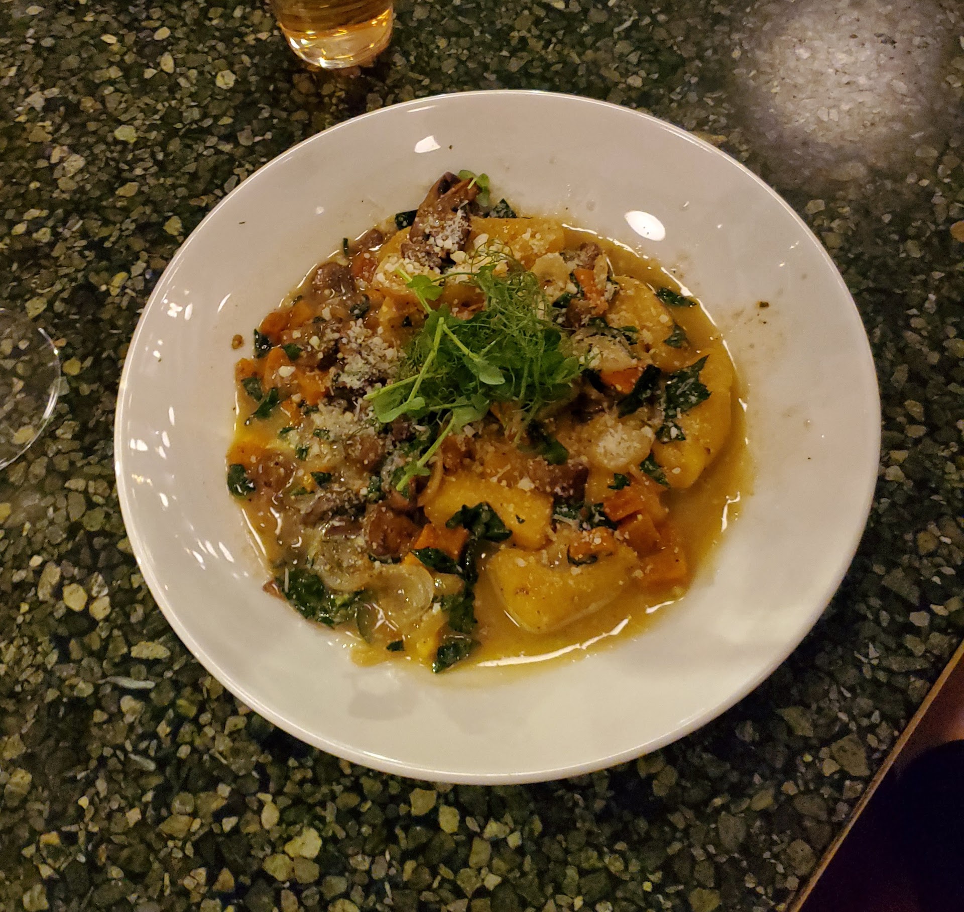 My fiancé tried the Butternut Squash Gnocchi. This dish consists of Pecorino butter, kale, mushrooms and cipollini. The gnocchi was light and fluffy but slightly doughy. The vegetables were all cooked well. The butter sauce was excellent and flavored well.